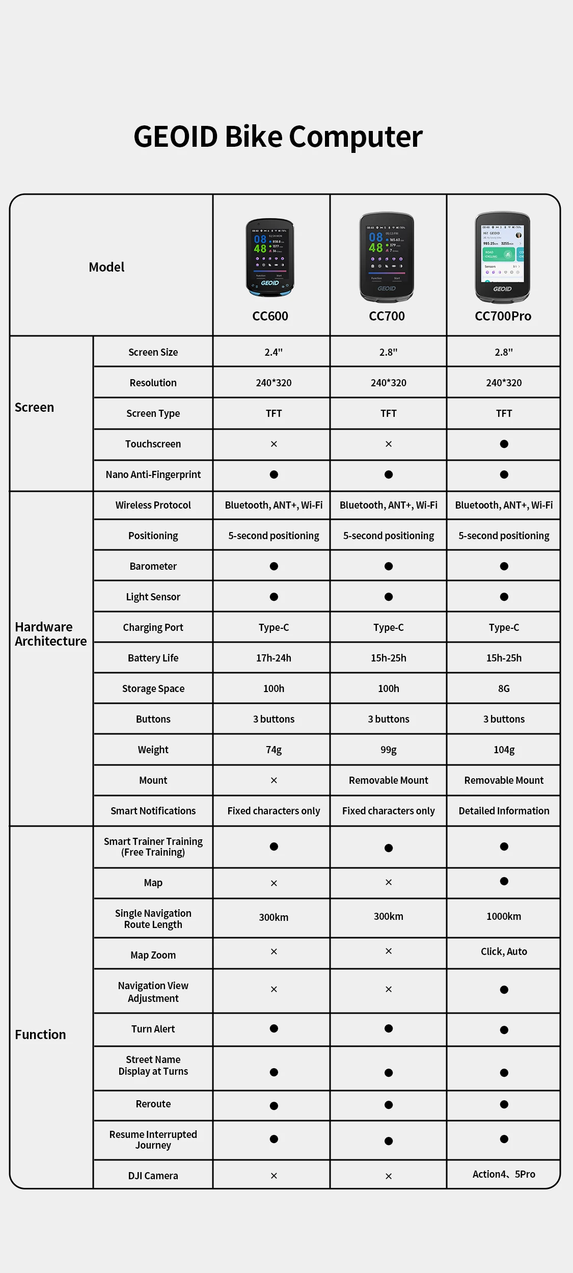 With Bluetooth and ANT+ protocols, CC600 supports 9 types of devices.