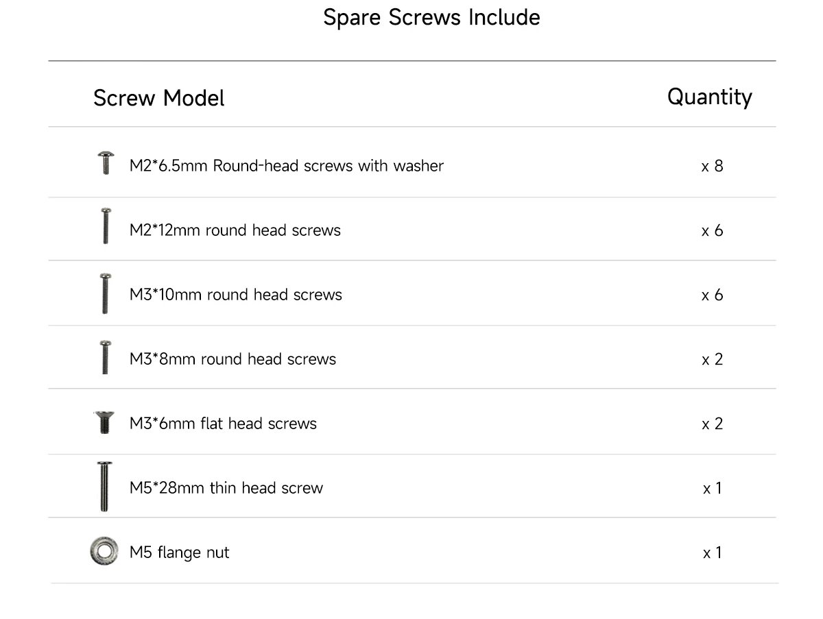 1 x Spare screw pack