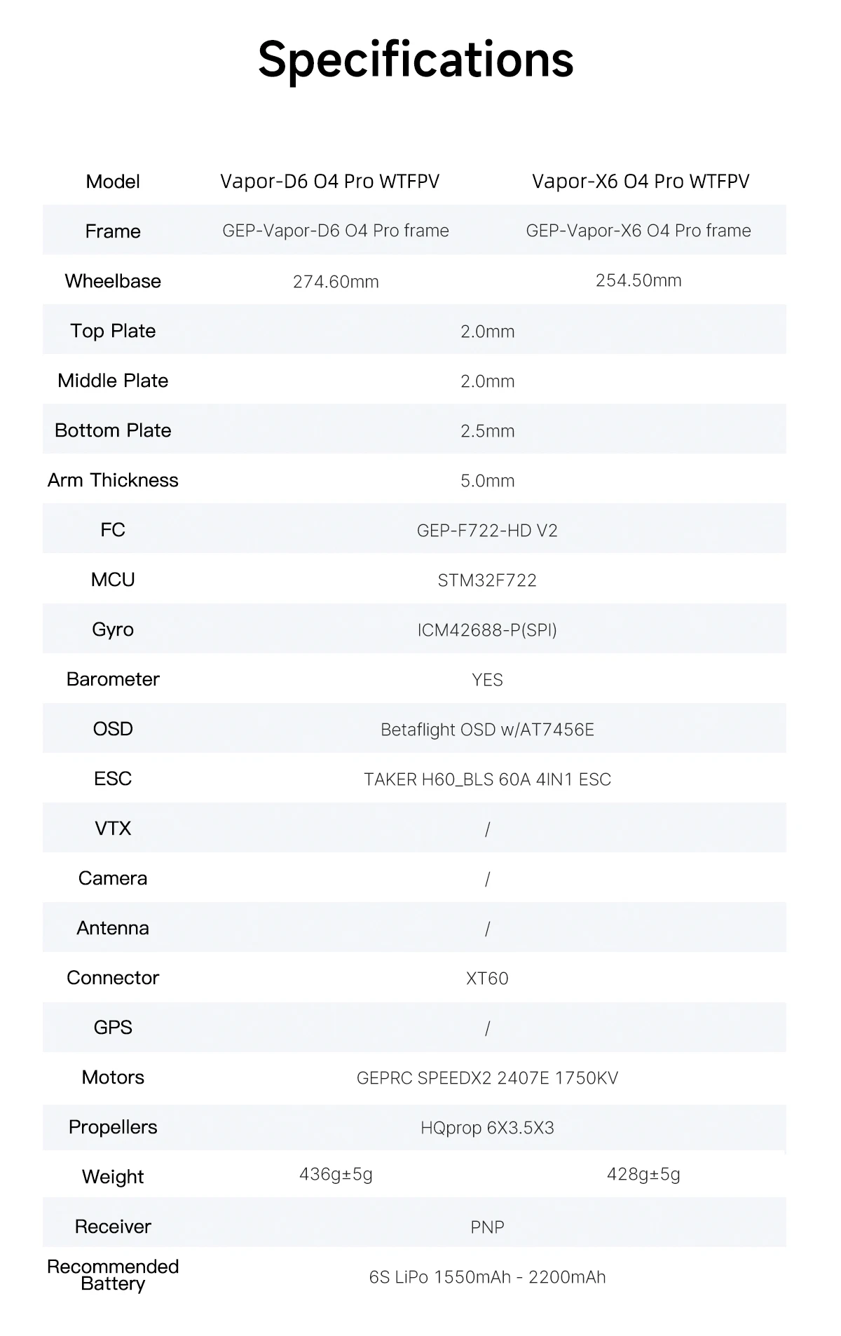 Specfication—Vapor-X6 O4 Pro WTFPV