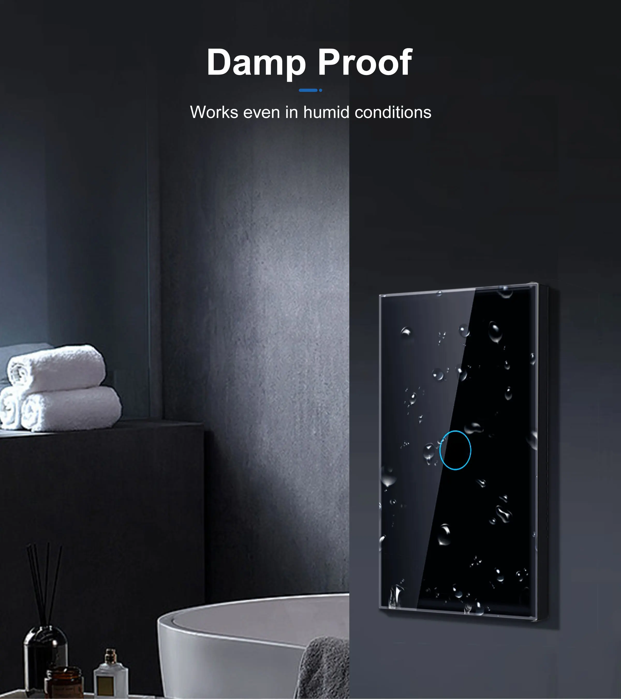 The wall switch adopts premium materials, such as fire-resistant shell, phosphor bronze connects and advanced PC+TEMPERED GLASS, can provide fire prevention, overload protection to protect your family. Our all products certificated by CE, FCC, and RoHS. Without using any harmful chemical substances, please fell relived about usage.