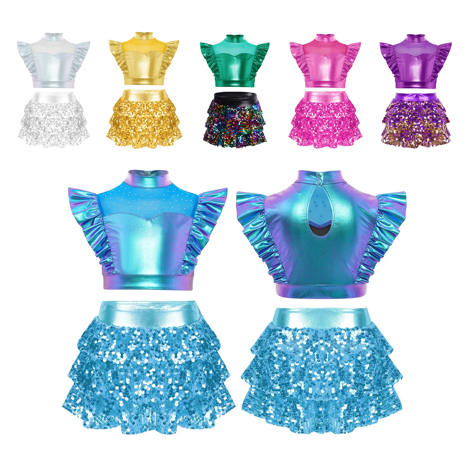 Dance culottes for girls, tiered design ruffles with shiny sequins, sparkle under the light to brighten up any performance.