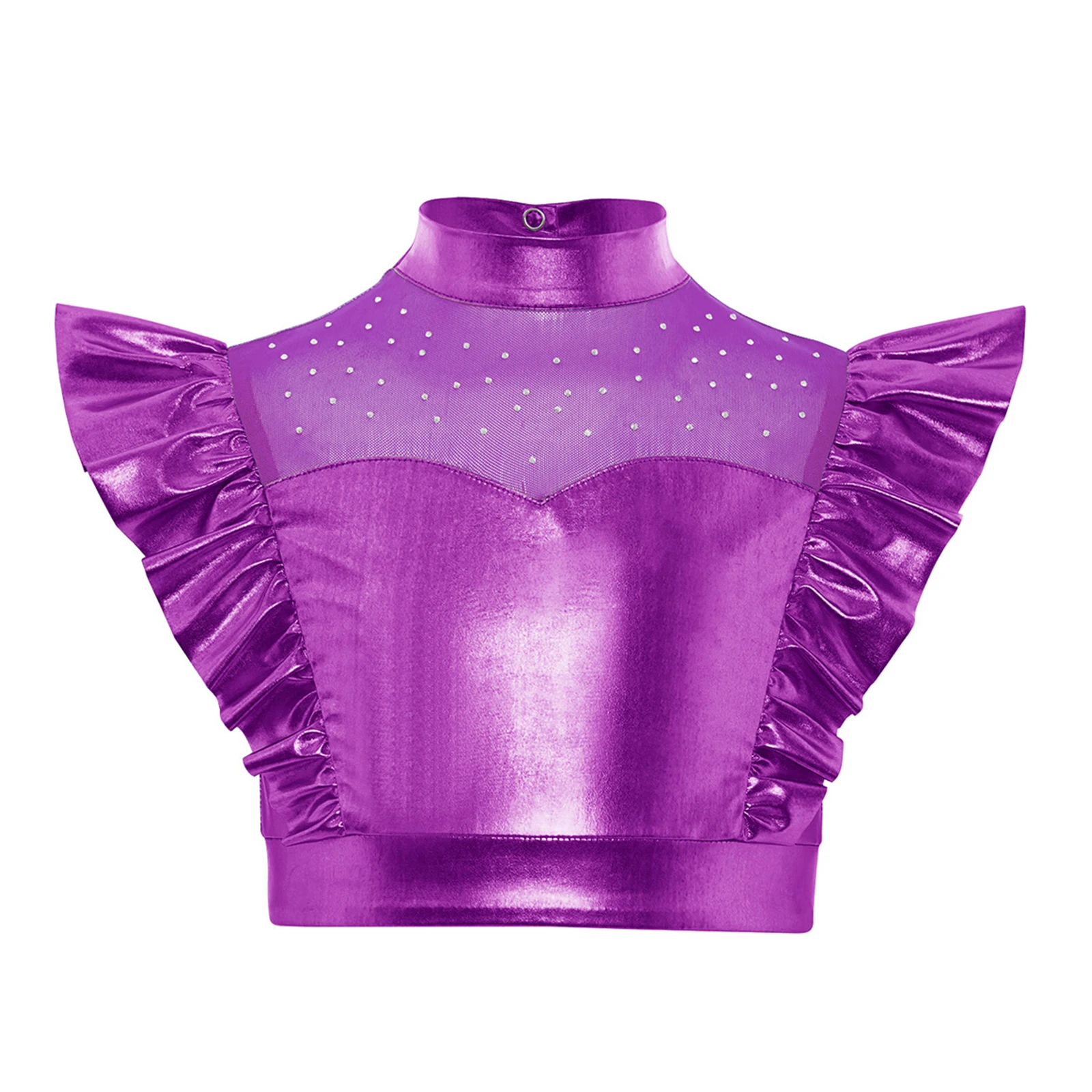 The top with mesh patchwork add a layer of style and uniqueness, while the rhinestone adornments bring a touch of sparkle and glamour.