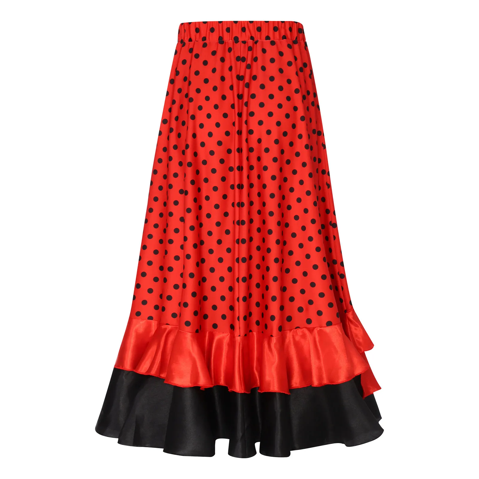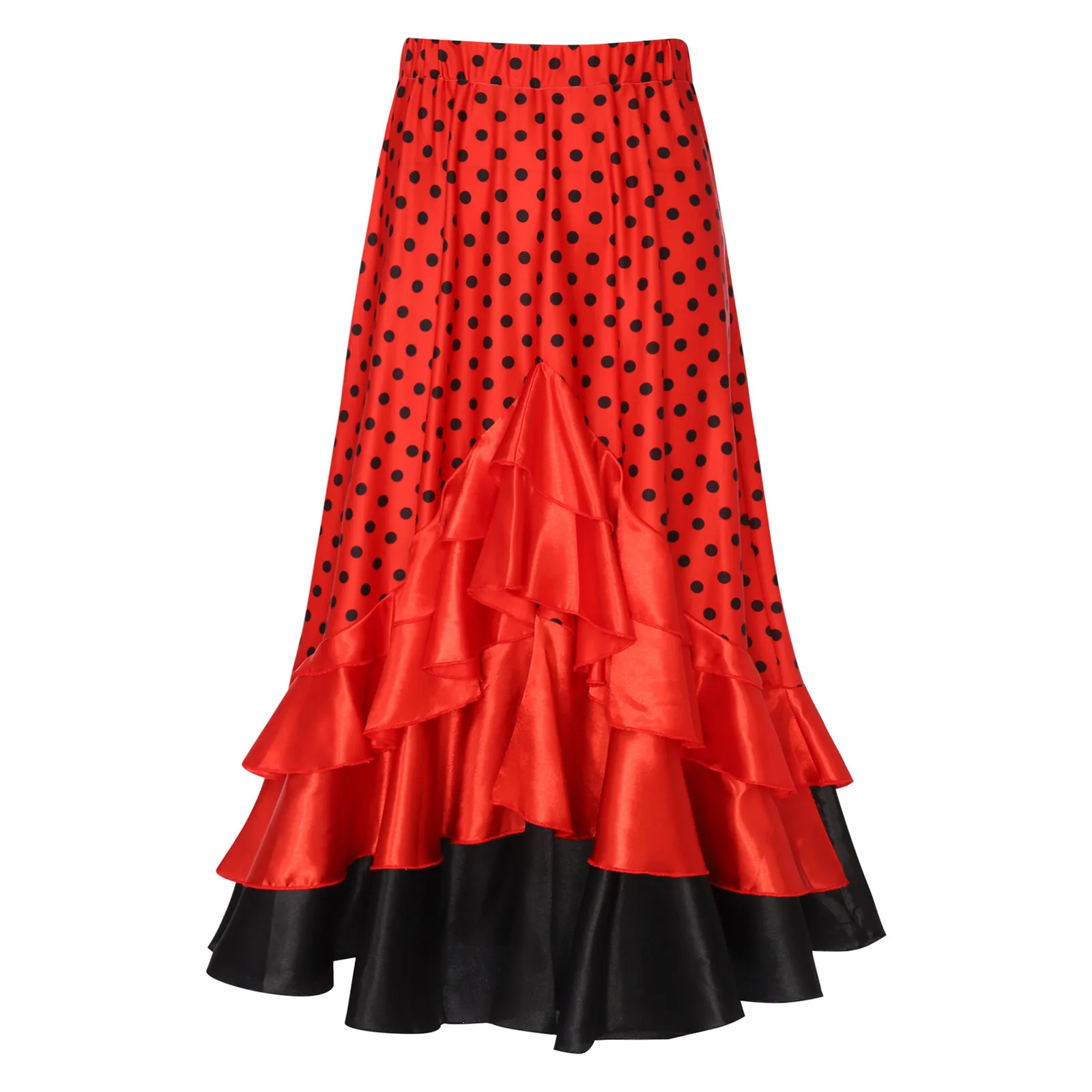 The layered ruffled design creates a voluminous and dynamic look, perfectly capturing the essence of Spanish flamenco dance.