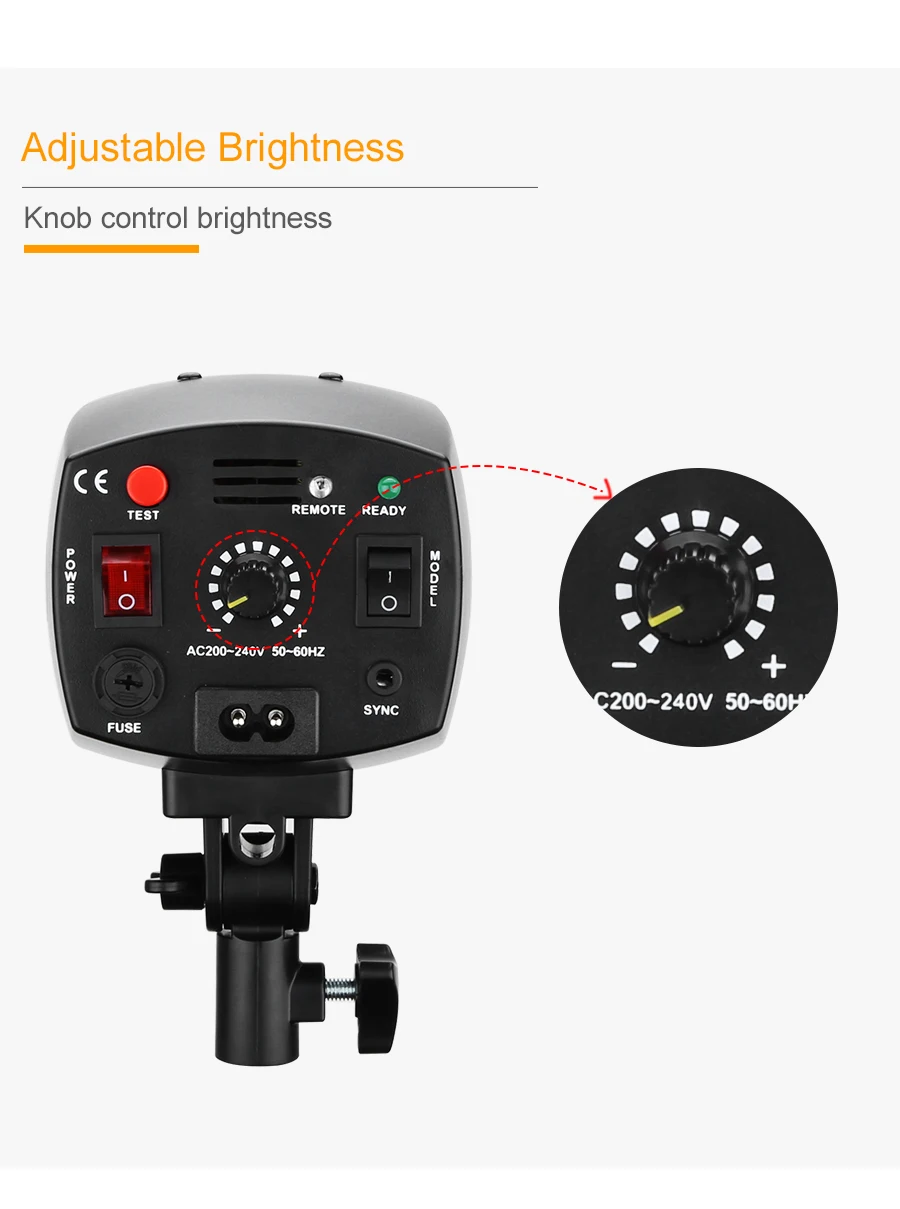Flash Triggering Method:Sync cord, Slave, Test button,Flash trigger