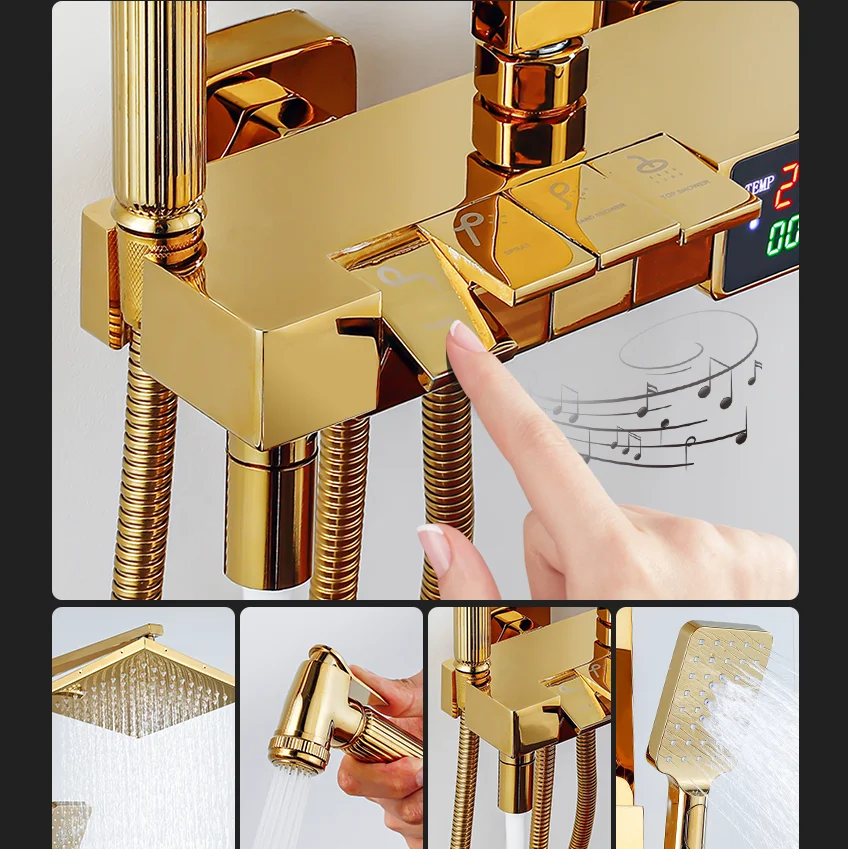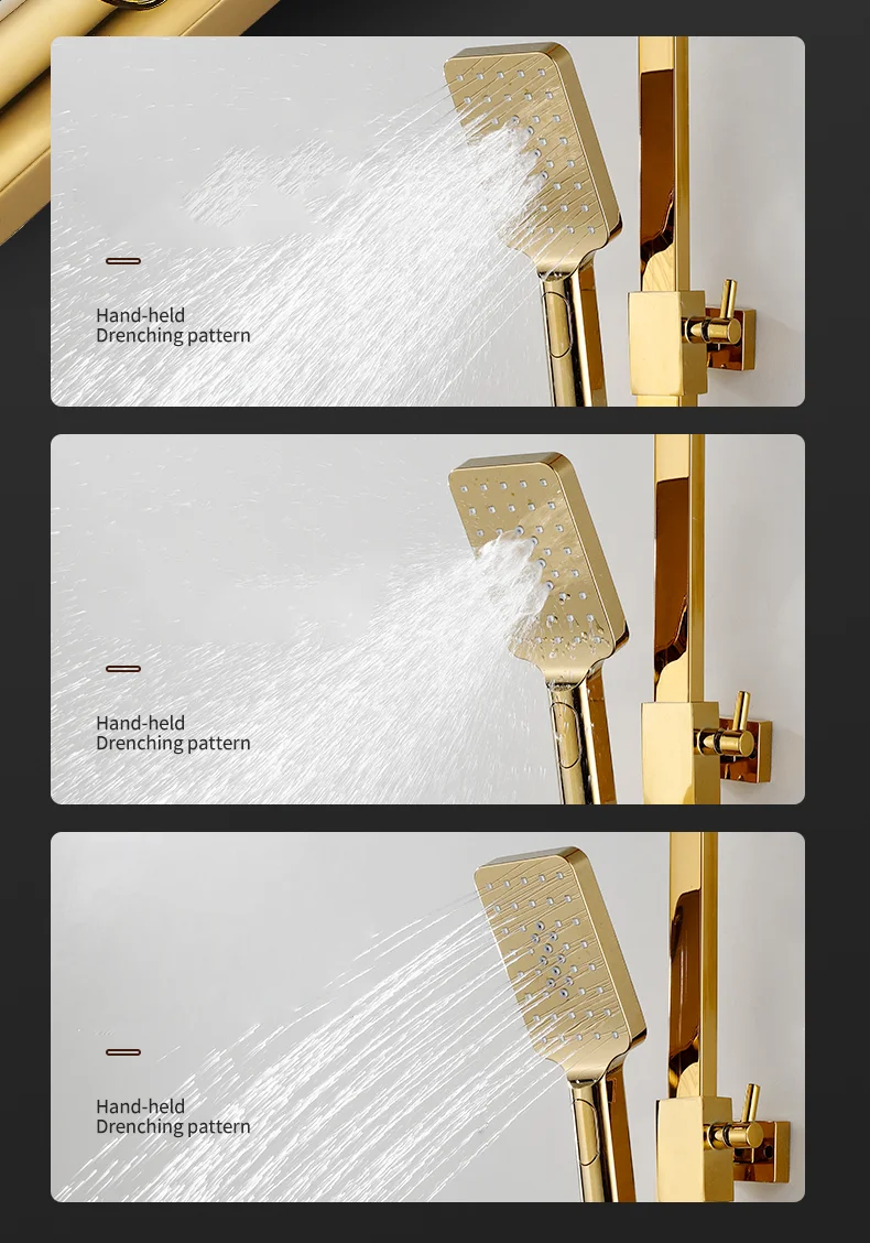 Multi-Functional Shower Experience: With a thermostatic faucet and multiple spray patterns (rain, jet, and massage), this shower system provides an unparalleled showering experience, allowing users to customize their water temperature and pressure to their liking.