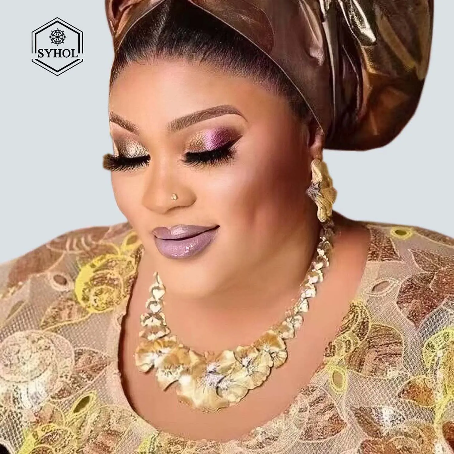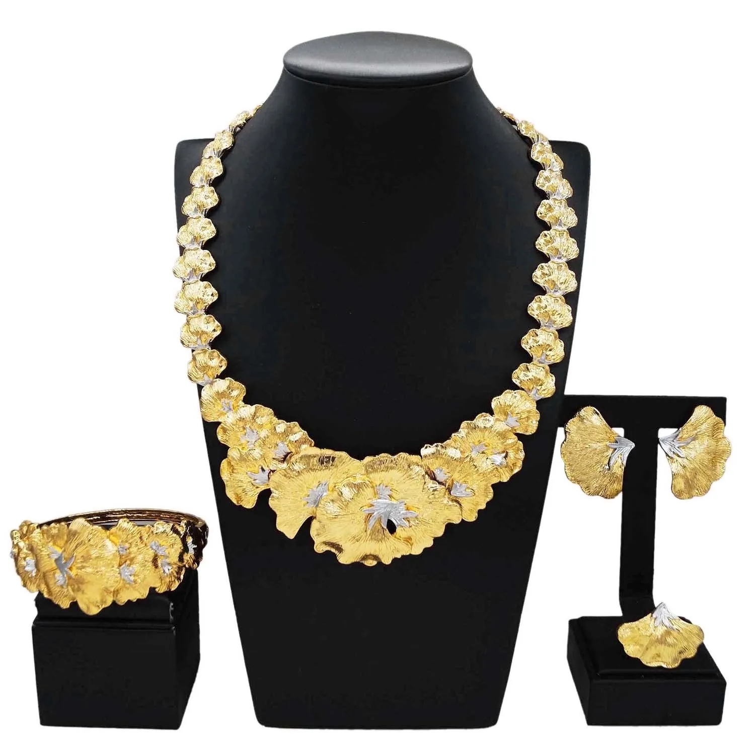Gold Plated Woman Jewelry Set Luxurious Flower Necklace Earrings Elegant Woman Dinner and Wedding Bijoux SYHOL