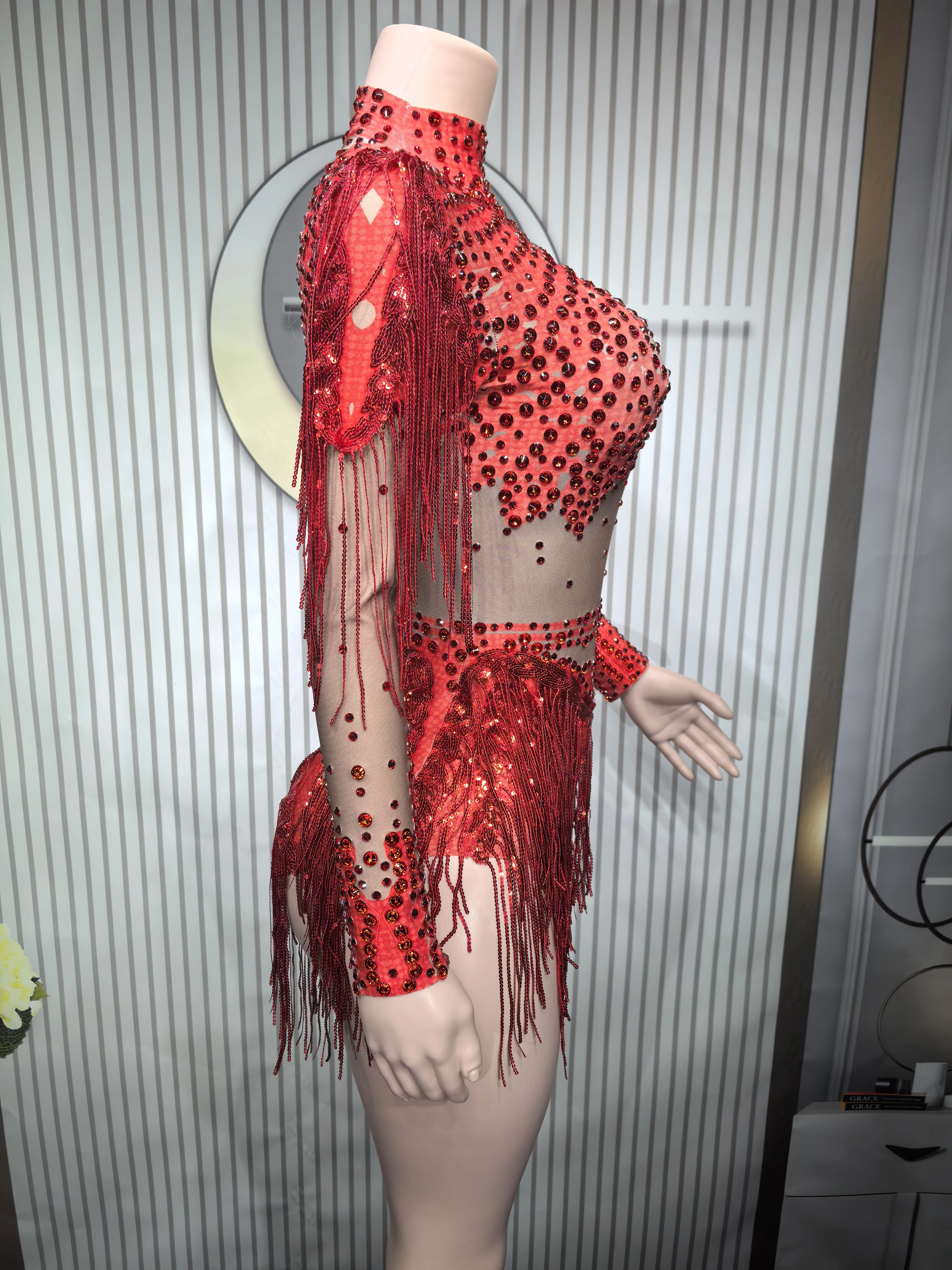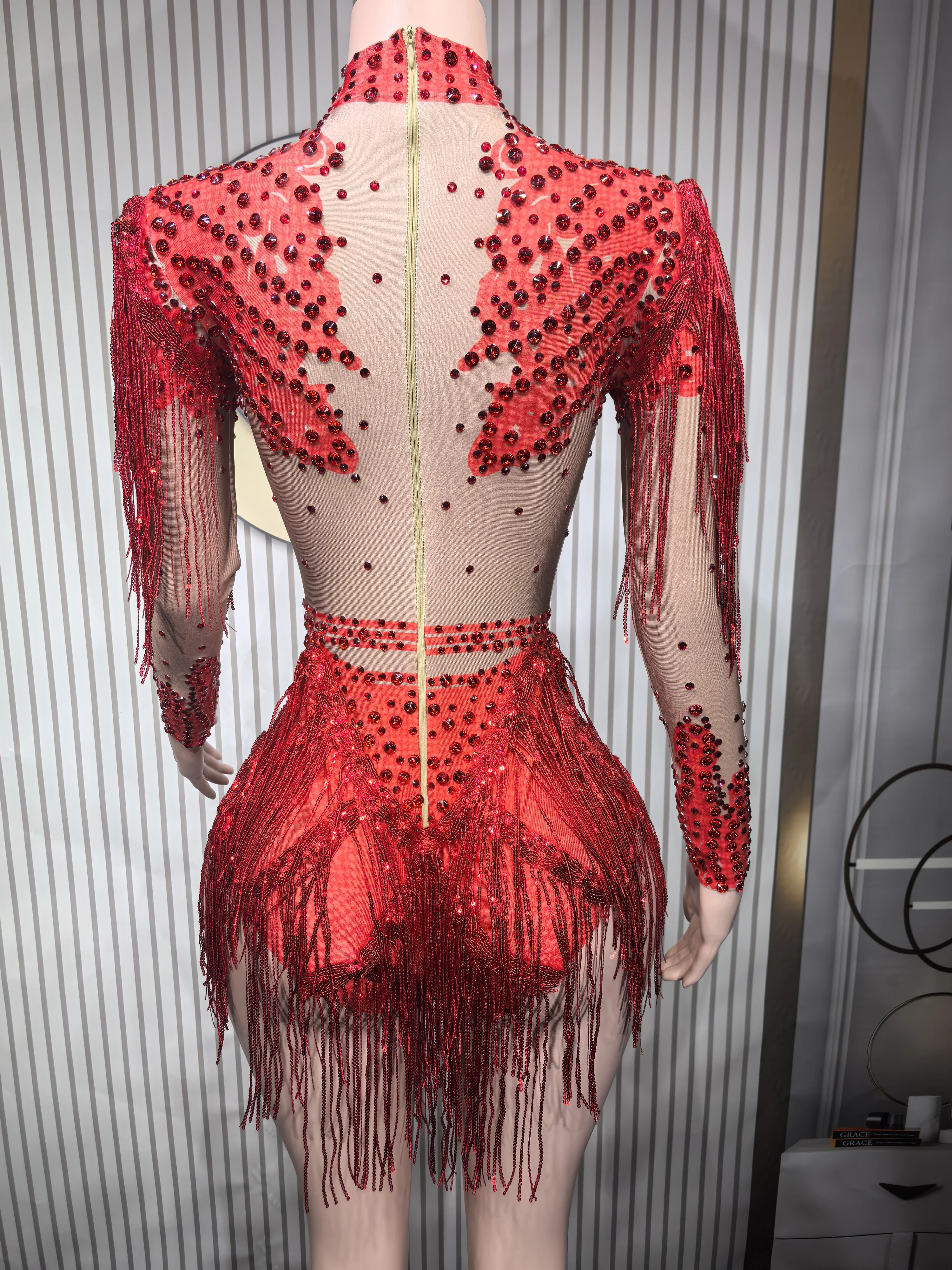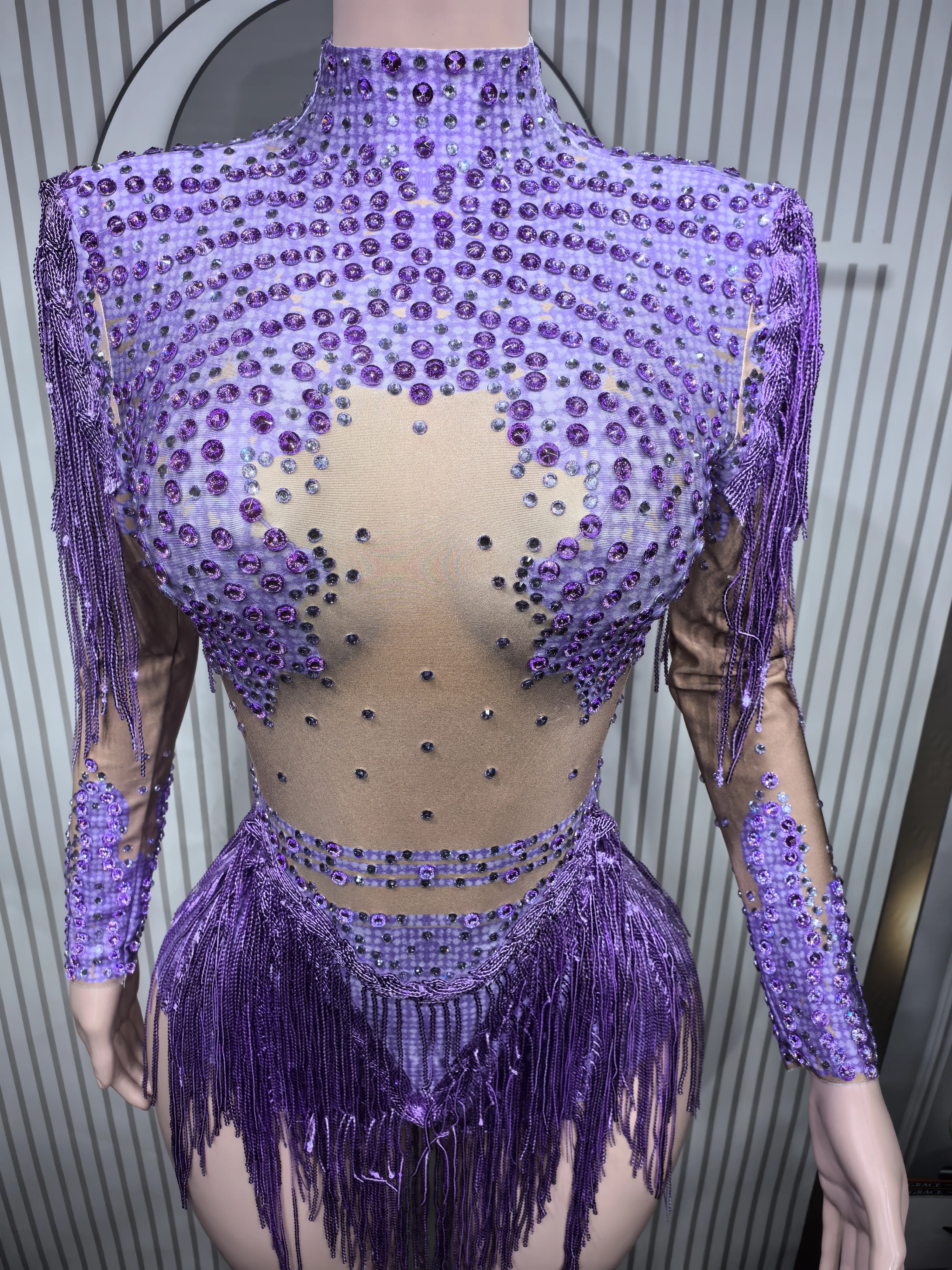 It’s beautiful, I wore it in a competition and everyone loved it. The skin-colored part is fabric, it’s not transparent, it’s full of pearls and looks super pretty, just like the image. I will buy in other colors. It arrived in a week to Mexico.