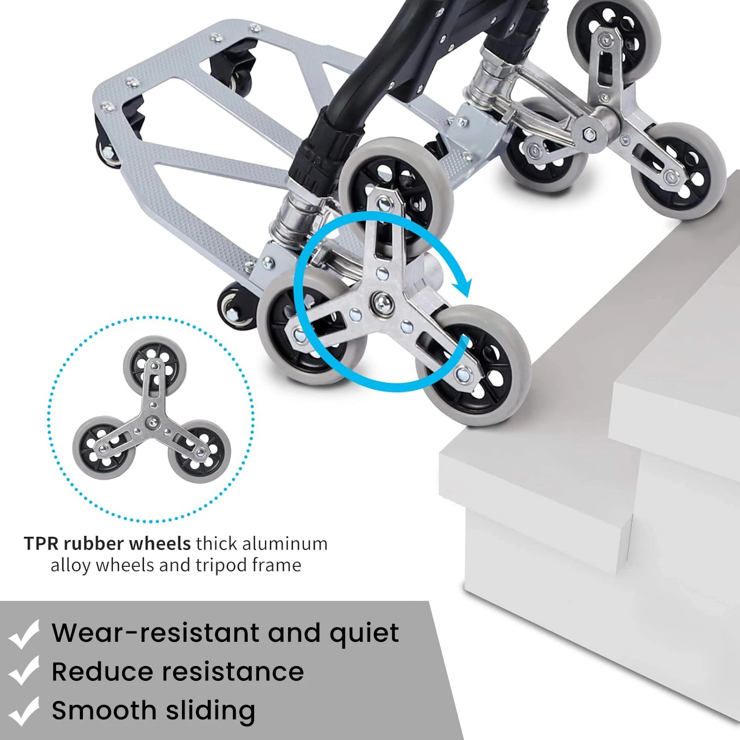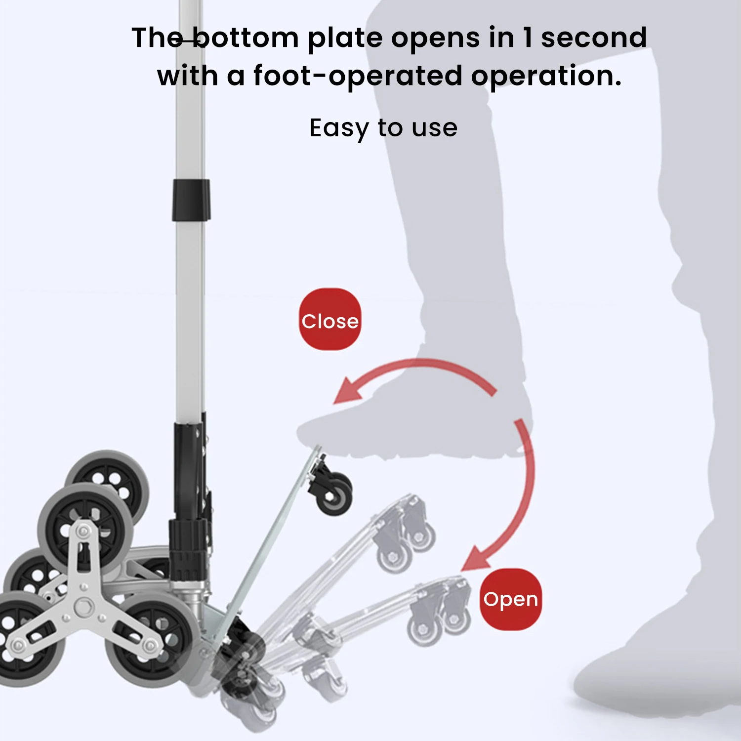 【wide application】the stair climber cart has a wide range.As a stair climbing cart, just install the bottom 4 wheels, you can stroll freely on the flat ground and stairs.In addition to carrying goods upstairs, it can also be used as an available cart to transport goods.For example, we carried luggage during travel, cartons in transportation, and shopping as a shopping cart