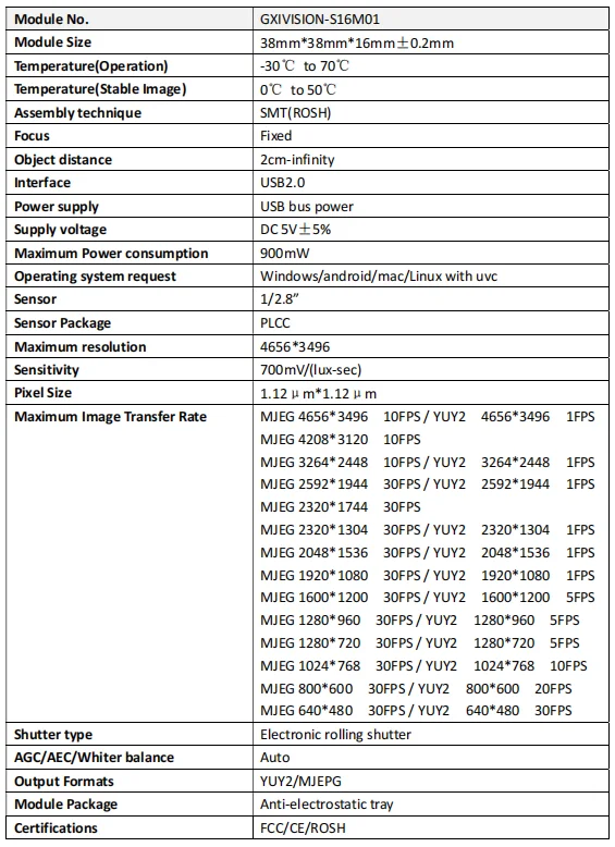 SHENZHEN GUOXUN INTELLIGENT TECHNOLOGY CO., LTD., who have 10 years history, is a professional manufacturer of surveillance system,has its own brand GXIVISION, which already well know in security surveillance system. With its own unique R&D team as the basic, oriented by dedicated sales team, GXIVISION already developed into a prefessional video products company integrate with developing, production, sales and also service all together. GXIVISION is developing its own special USB Cameras for industrial vision. Recently, we present new USB camera ,including VGA USB camera module, 1MP USB camera , 2MP USB camera, 3MP USB camera ,5MP USB camera , 5MP autofocus, 8MP USB camera ,8MP autofocus,13MP USB camera to 16MP USB camera which already used in all kinds of industrial system.