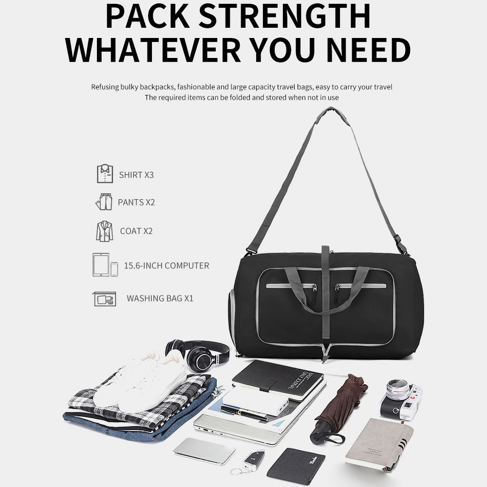 Travel Bag: The large capacity design can accommodate all your travel essentials such as clothes, shoes, laptops, etc.
