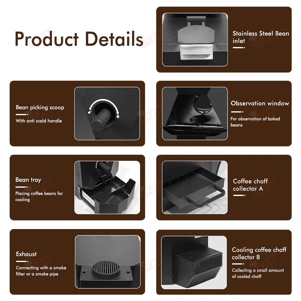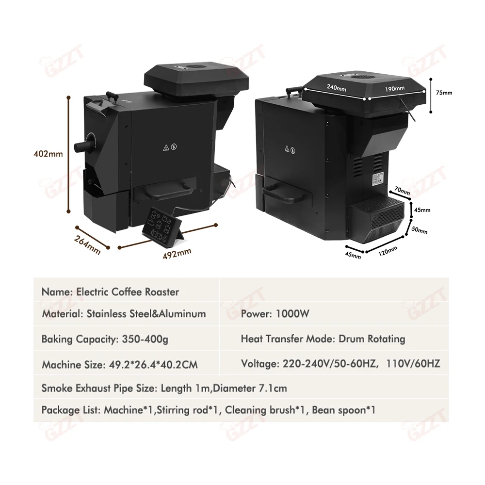 GZZT CBR Automatic Coffee Bean Roaster with 3 Baking Curv Commercial Roaster Electric Roasting Machine Grain Dryer 110V 220V