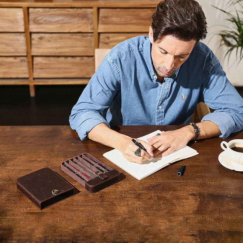 2.Drawer-style pen bag, can hold 6 pens, retro and high-end;