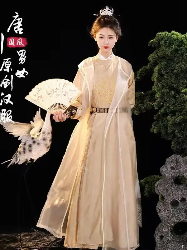 Hanfu Robes Men Traditional Chinese Style Swordsman Stage Cosplay Clothing Man And Woman Couple Ancient Folk Tang Suit