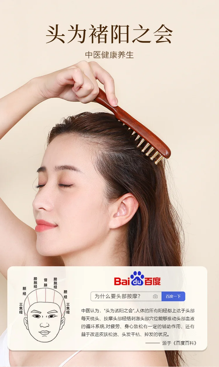 2.Masaje saludable: su diseño de cabeza redonda puede proporcionar un buen efecto de masaje, mientras draga los meridianos de la cabeza, brindando una experiencia tranquila y cómoda, lo cual es útil para reducir el estrés y estimular el moral.