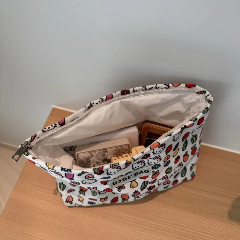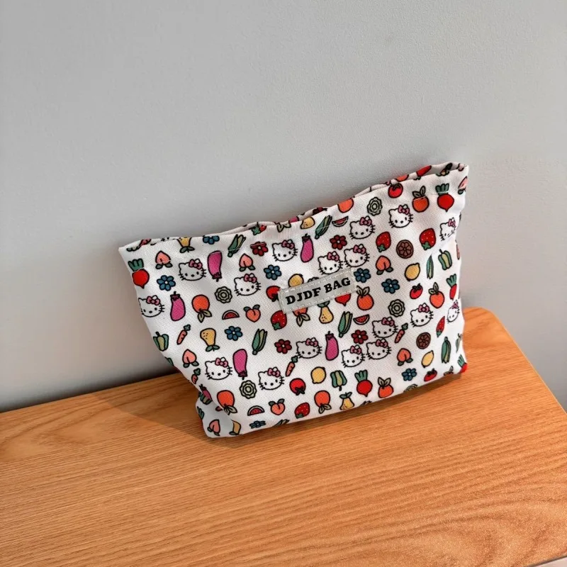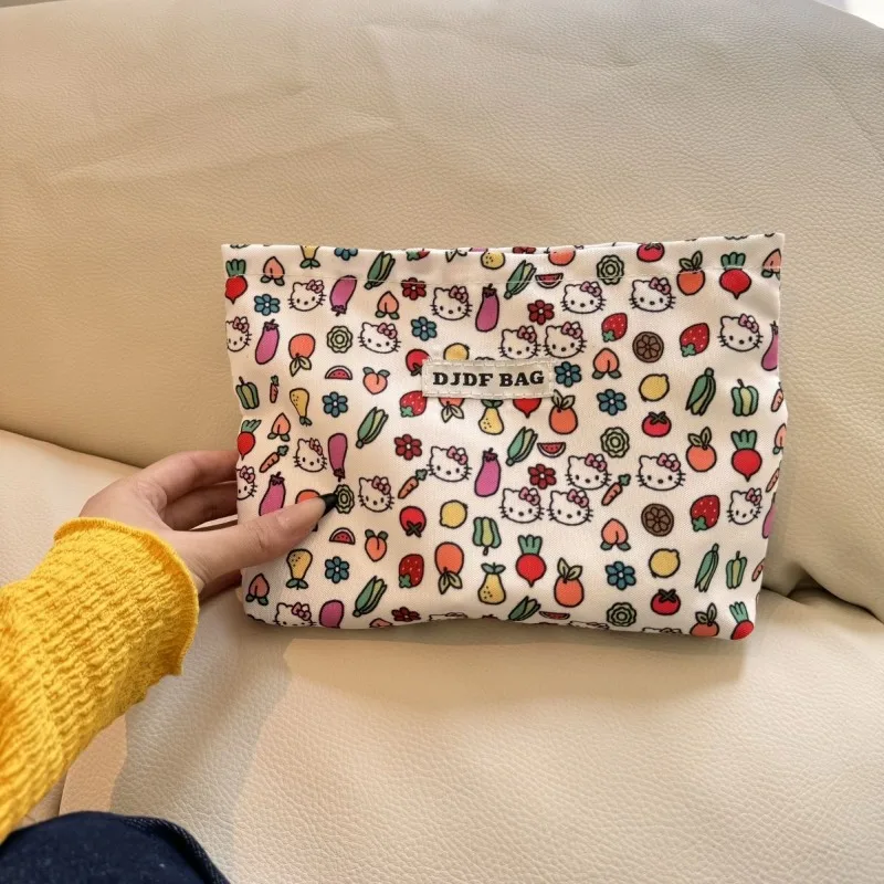 Crafted from durable canvas material, this clutch features a vibrant Hello Kitty cartoon print that maintains its color and charm through daily use. The sturdy fabric offers both longevity and a lightweight feel, making it an ideal choice for everyday carry.