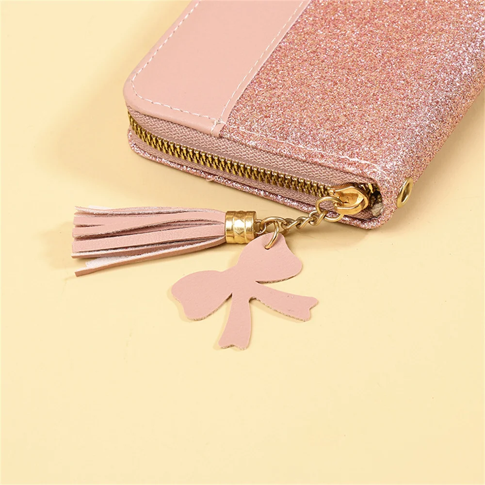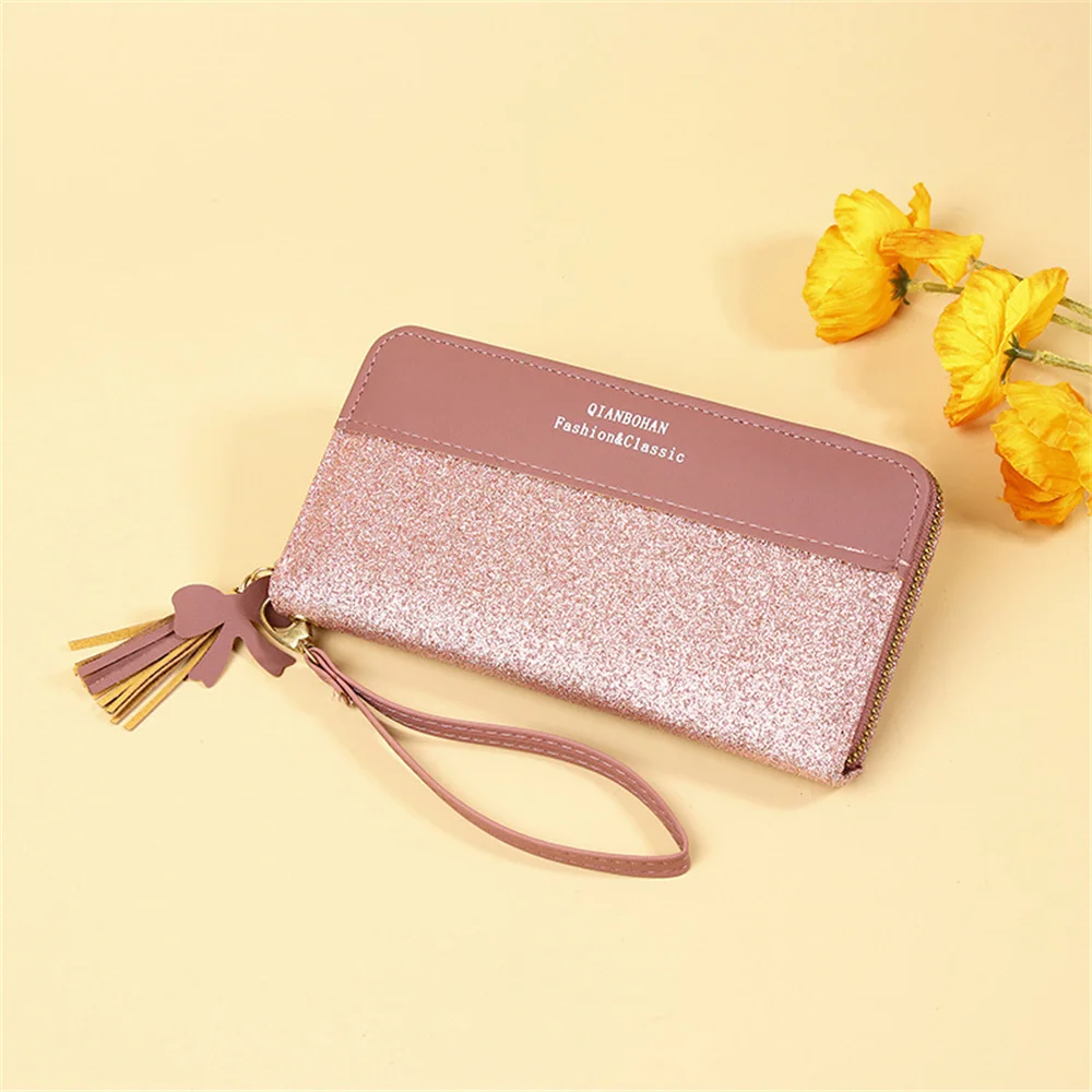 2022 new wallet long ladies zipper wallet female Korean version stitching contrast color tassel wild card bag mobile phone bag