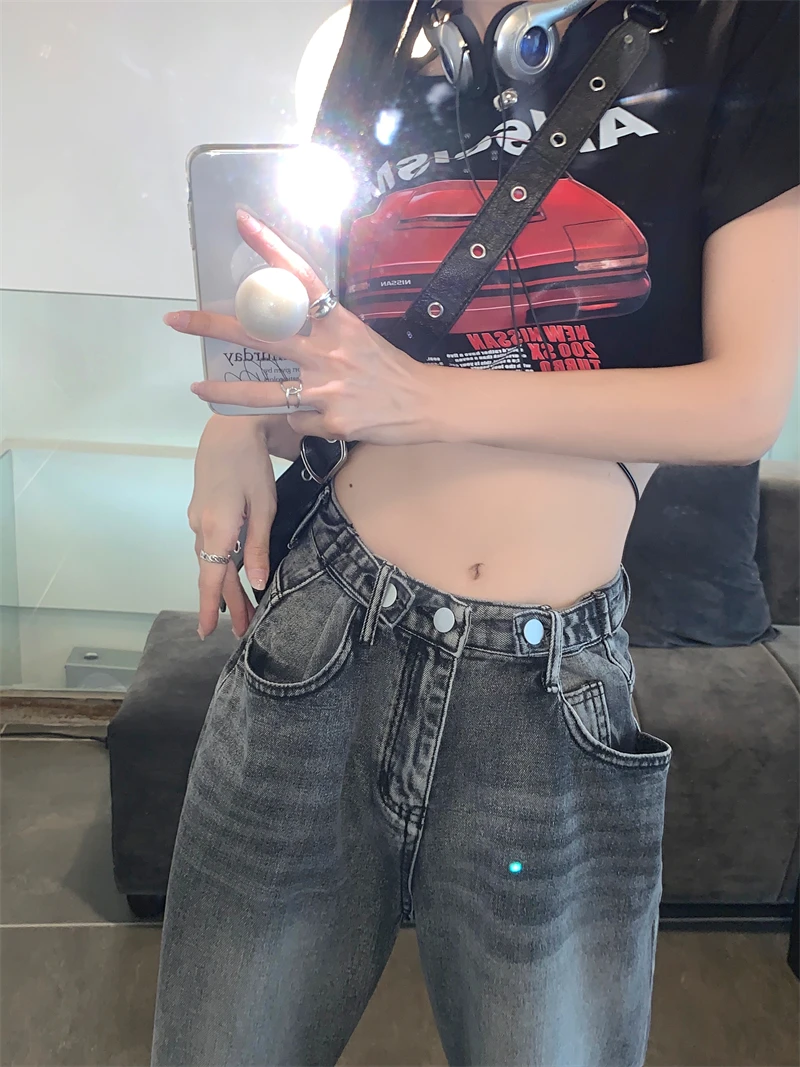 The high-waist design of these jeans accentuates the waistline, creating an illusion of a slimmer figure. It’s perfect for those who want to enhance their silhouette.
