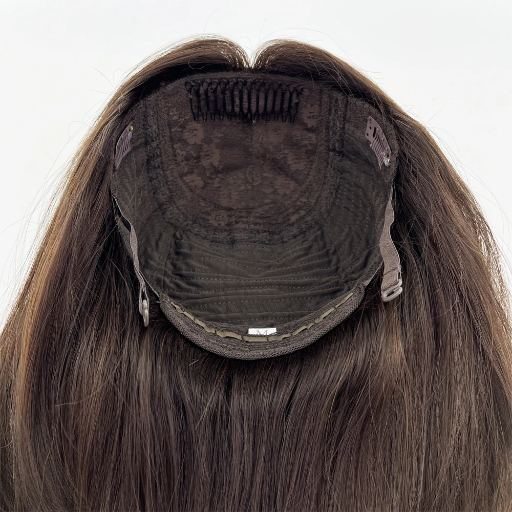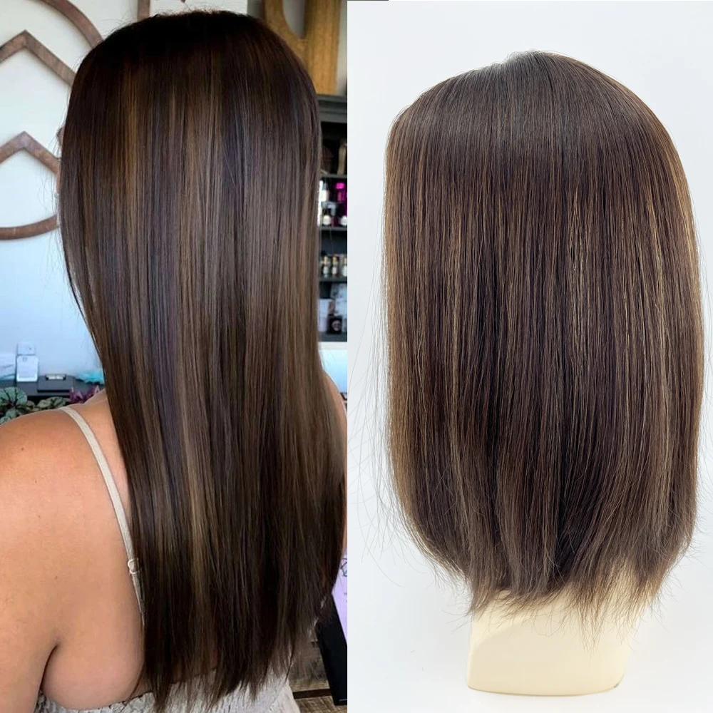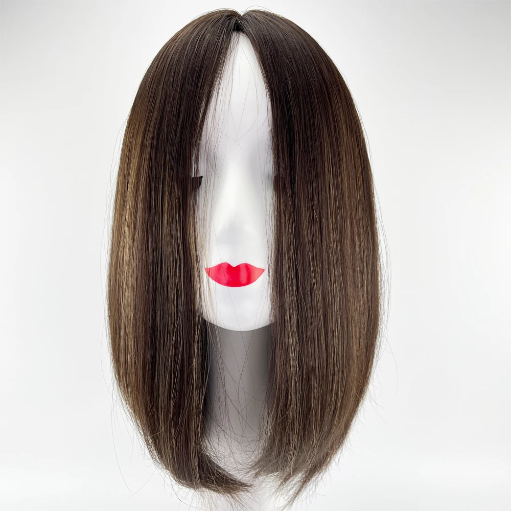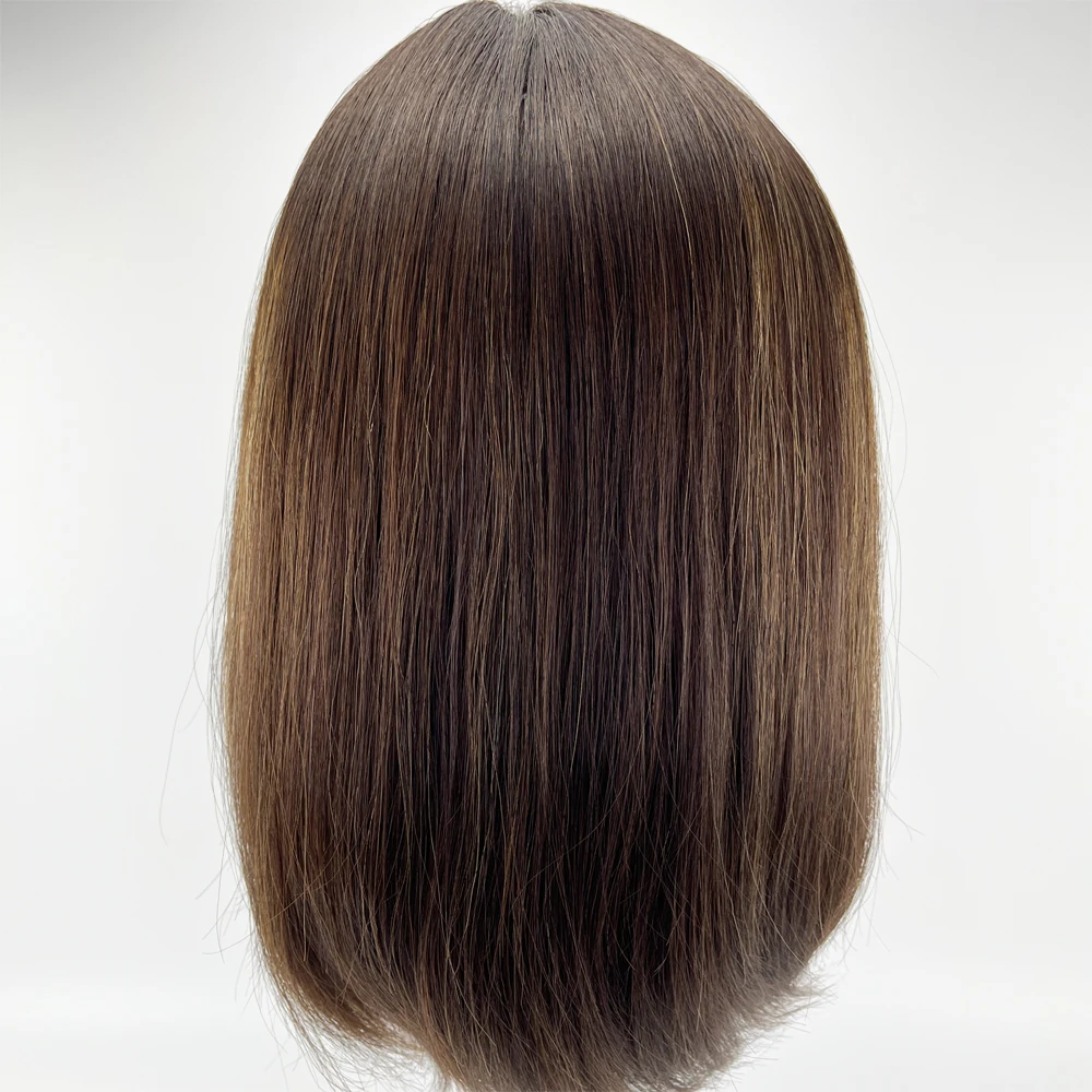 Highlight Brown Skin Silk Top Jewish Wig Bob Wig Virgin European Human Hair With Clips In 14 Inch Virgin Hair Silk Base Wig