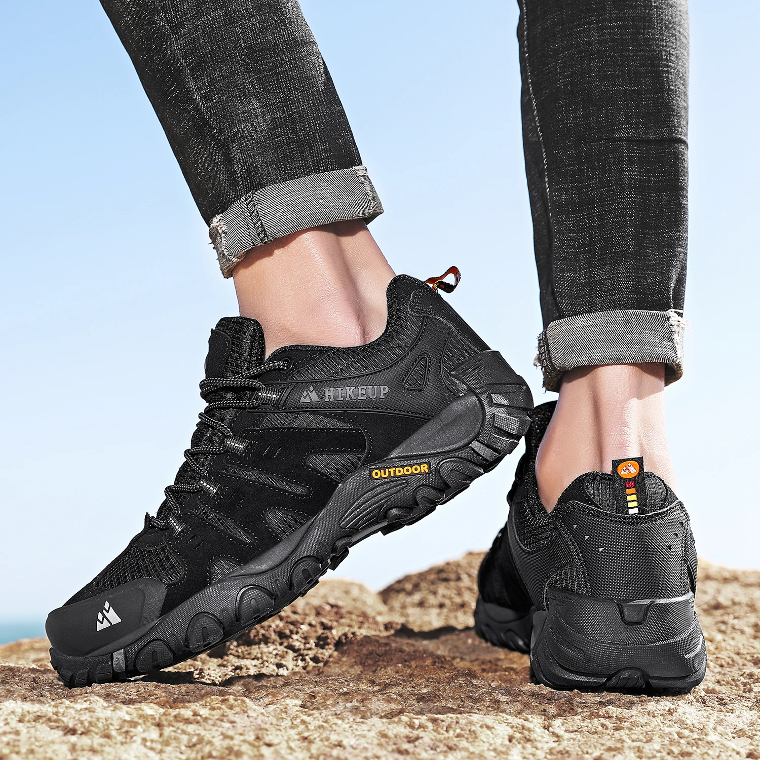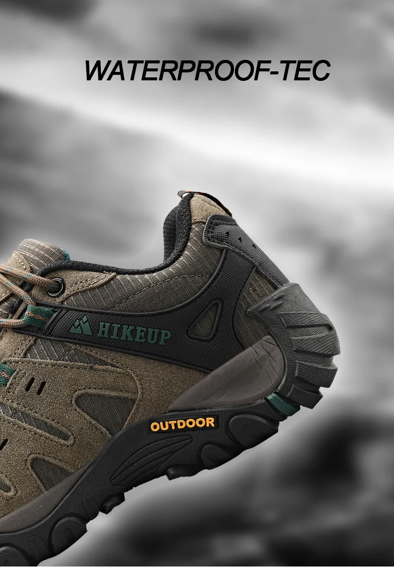 HIKEUP Men’s Hiking Shoes Suede Leather Ourdoor Shoes Wear-resistant Men Trekking Walking Hunting Tactical Sneakers Factory Outlet
