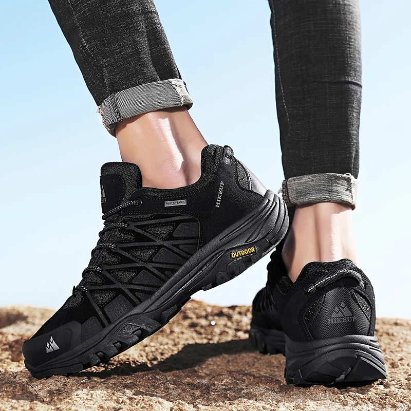 HIKEUP New Arrival Mens Hiking Shoes Breathable Lace Up Trekking Male Cushioning Outdoor Climbing Tourism Sneakers for Men