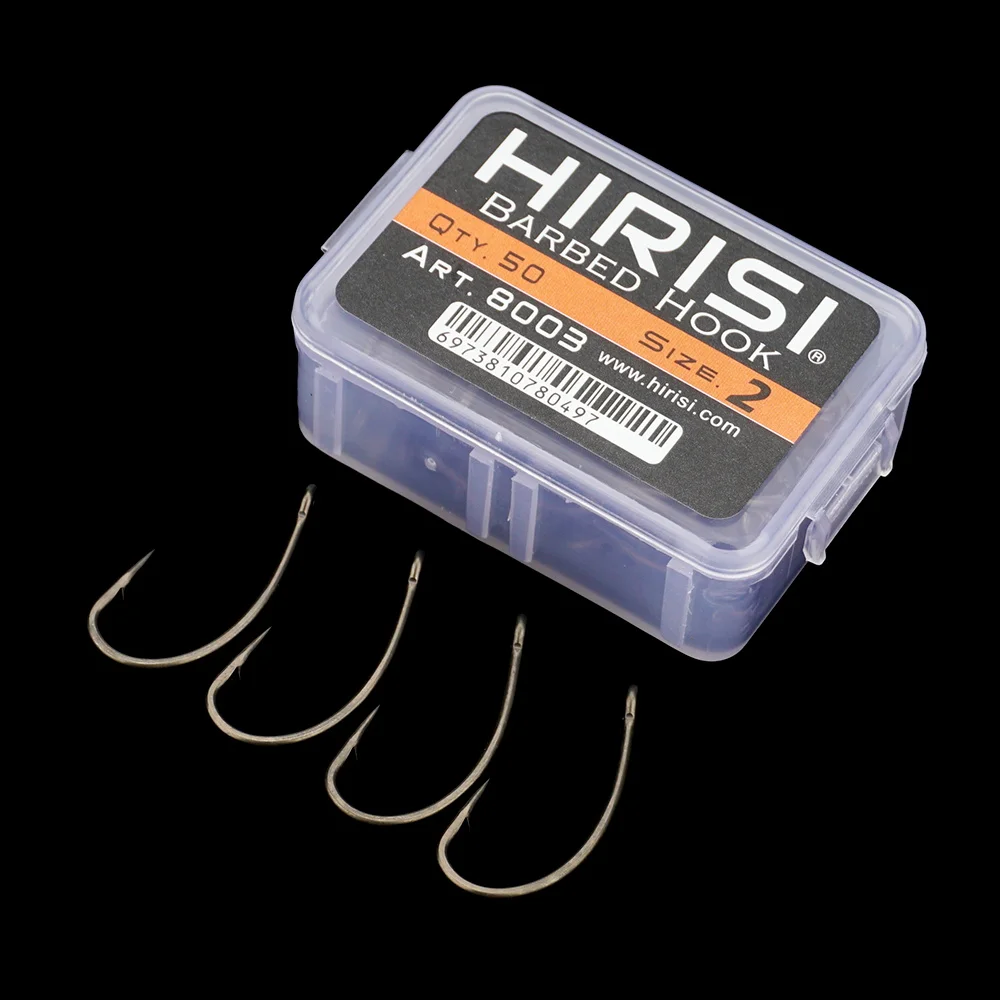Hirisi 50/100Pcs Coating High Carbon Stainless Steel Barbed Carp Fishing Hooks With Eye Fishing Accessories 8003