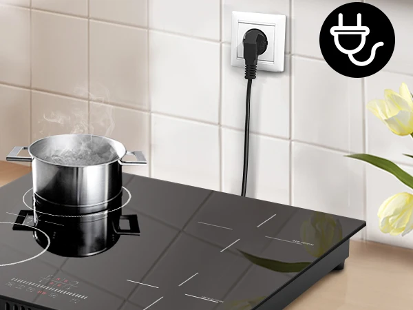 13amp Plug-in induction cookers do not require an electrician to be arranged for wiring installation; they are embedded in the countertop and are plug-and-play. (Limit total power 2800W)