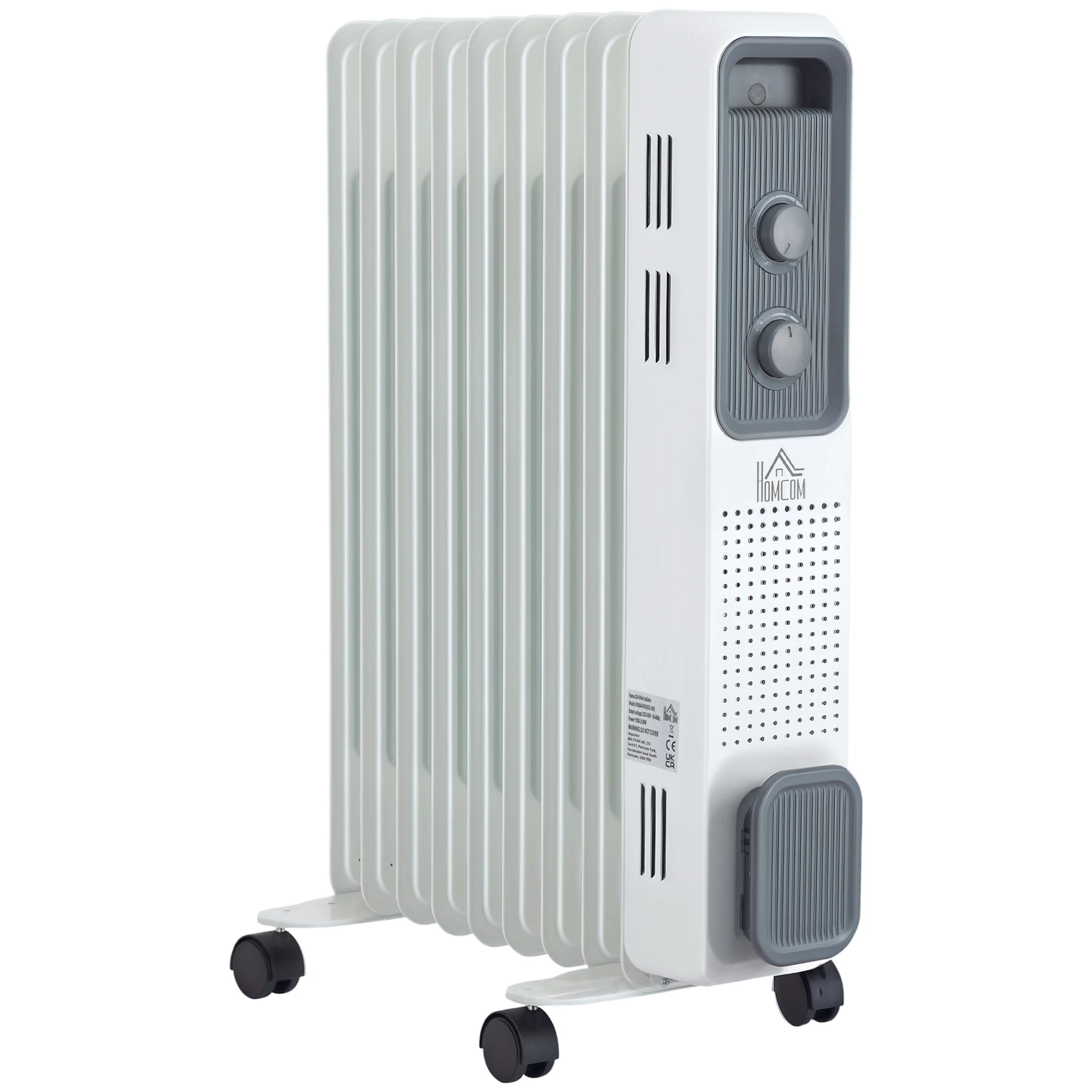 Keep warm with this oil filled radiator from HOMCOM. With an adjustable temperature of 7-35℃ and three heating modes, you’re in control of the heat you want. The overheating and tip-over function will turn it off safely, so you can enjoy this portable radiator with peace of mind. Move with minimum fuss using the wheels and handle, making sure no room goes cold. It’s complete with a cable organizer for tidiness. Get a cosy winter by HOMCOM electric radiator.