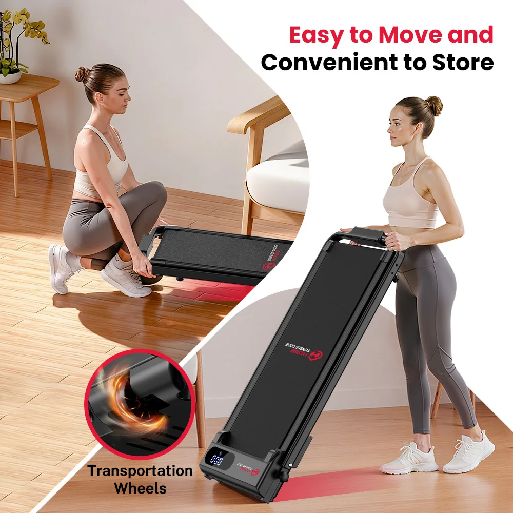 –LED Display & Remote Control – Check your time, speed, calories, and distance easily, and control the treadmill via remote or handrail buttons.
