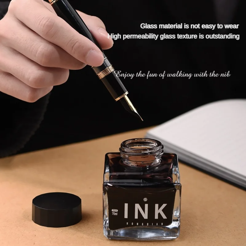 The perfect fusion of design aesthetics and practicality, HONGDIAN’s ink bottle boasts a unique pen rest design, where your cherished pen gracefully rests, akin to a fine horse paired with a fine saddle, and a fine pen deserves fine ink. Its 70ml large capacity, individually packaged to prevent breakage, ensures freshness with every use.