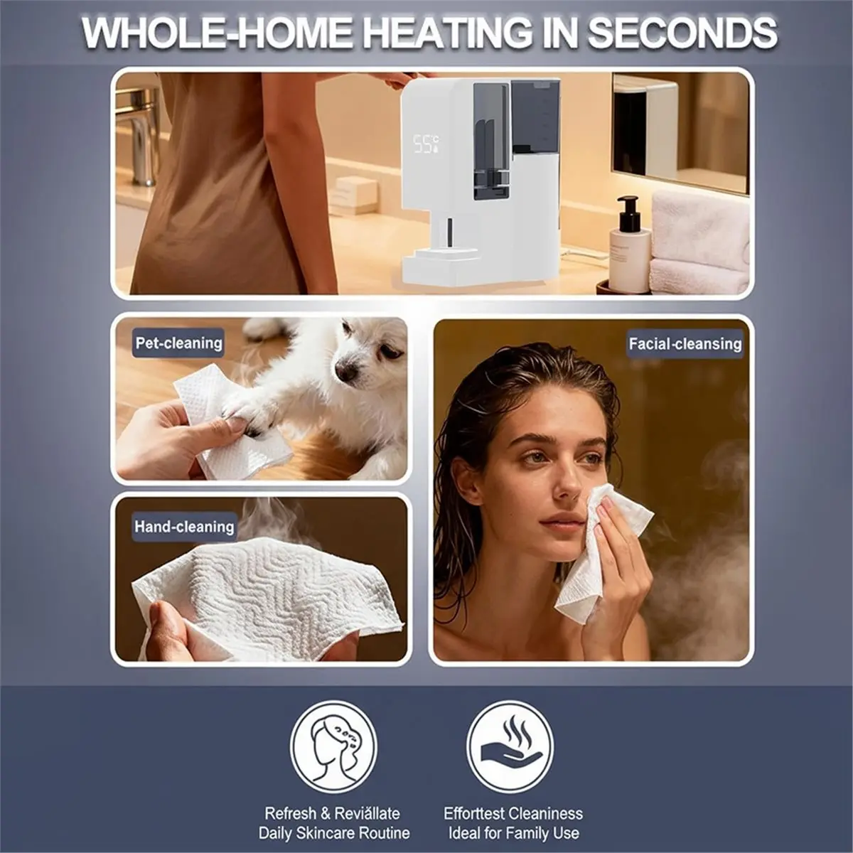 Portable & Family-Friendly: Upgraded 500ML Water Tank Hot Face Towel Heater Machine is lightweight and portable, suitable for bathrooms, bedrooms, or vanity areas. Upgraded from a 400ML to a 500ML large water tank, this Face Towel Warmer supports longer use between refills and works seamlessly.
