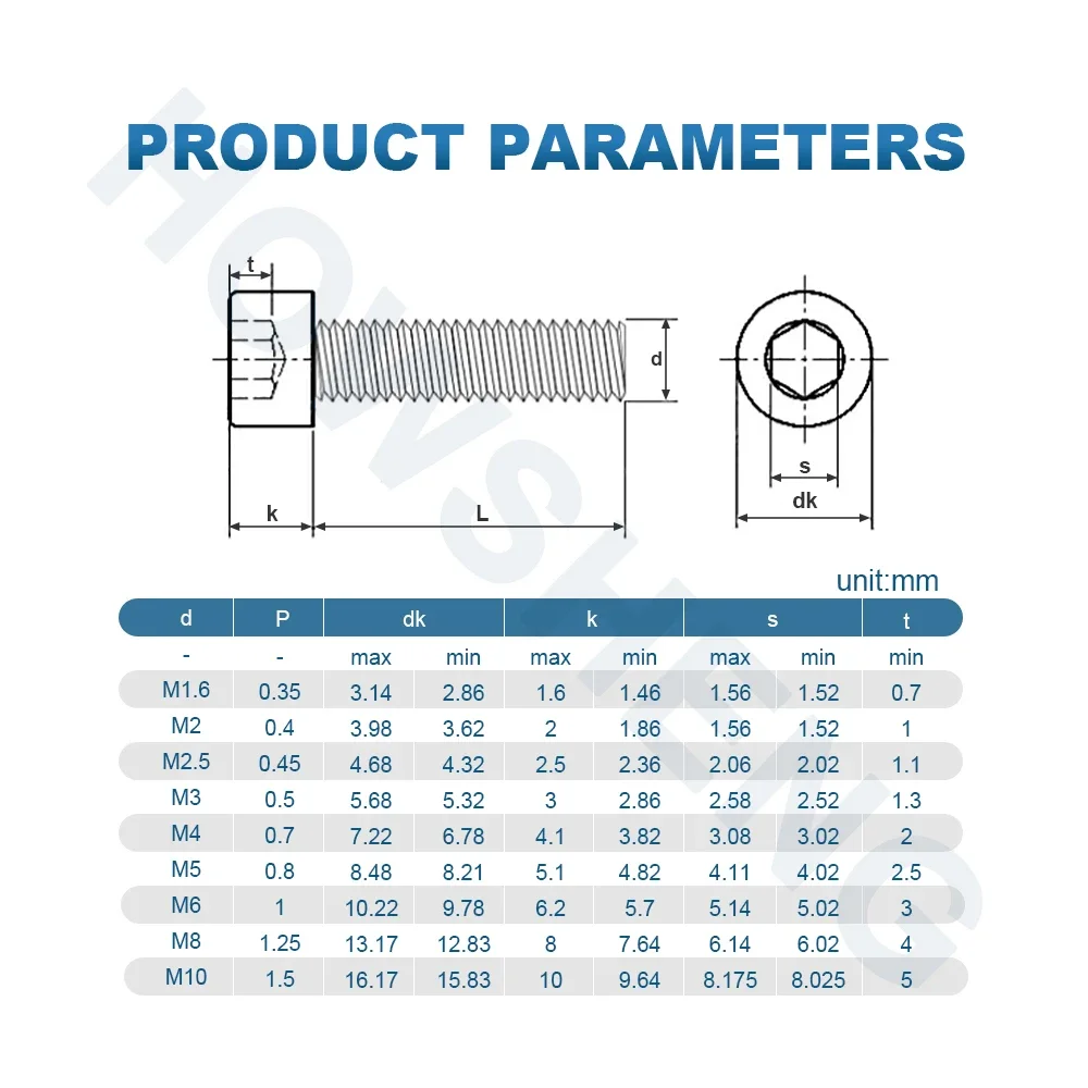 - Size: M1.4 M1.6 M2 M2.5 M3 M4 M5 M6 M8 M10