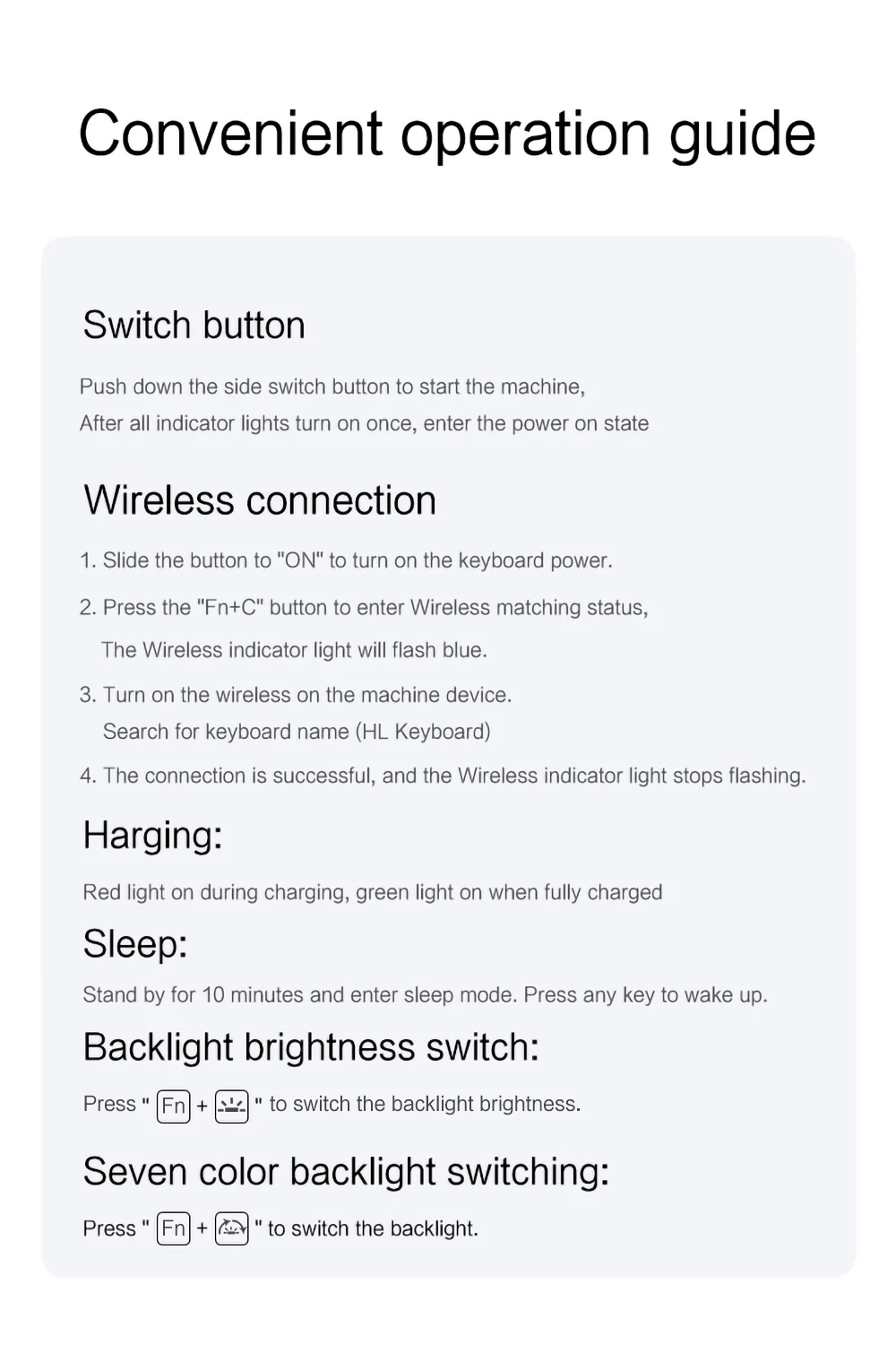 Note 3:After Open the Power, Please Click "Fn" and "C" 【Fn+C】Button Together to Open the Keyboard's Bluetooth. It is Very Important.
