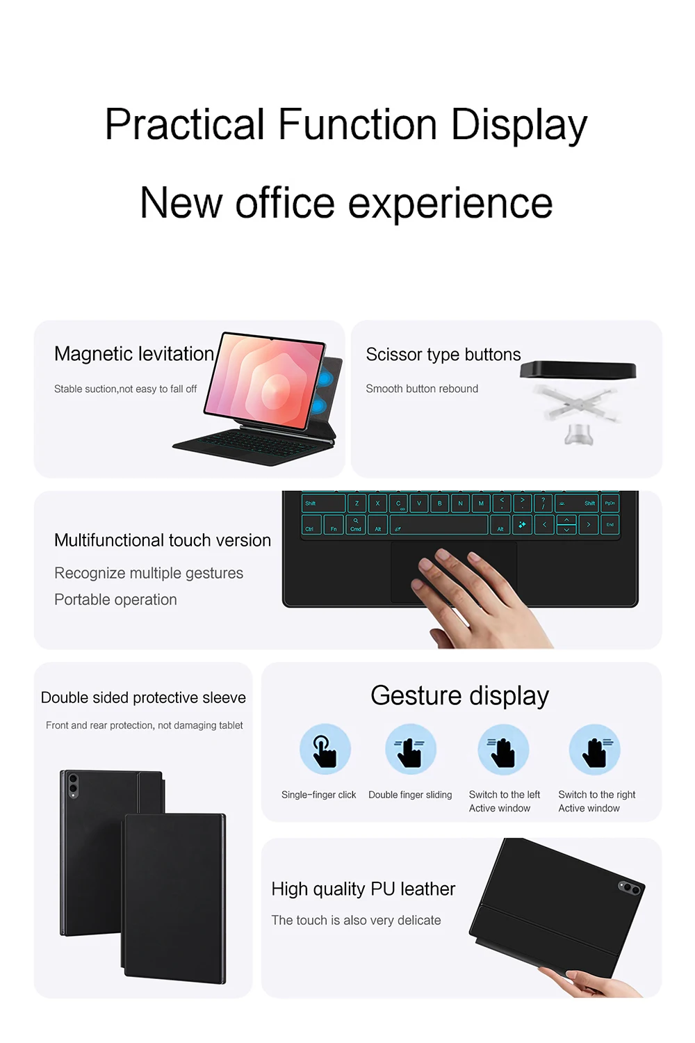Magnetic adsorption, backlight, touch panel, multi angle support、Wireless Bluetooth connection