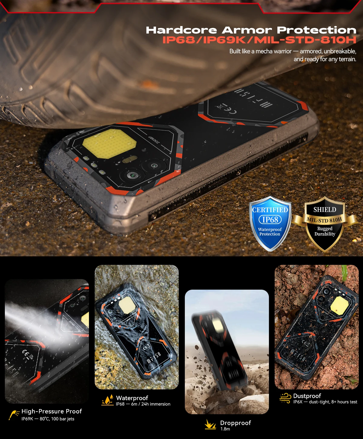Hardcore Armor Protection — IP68 / IP69K / MIL-STD-810H