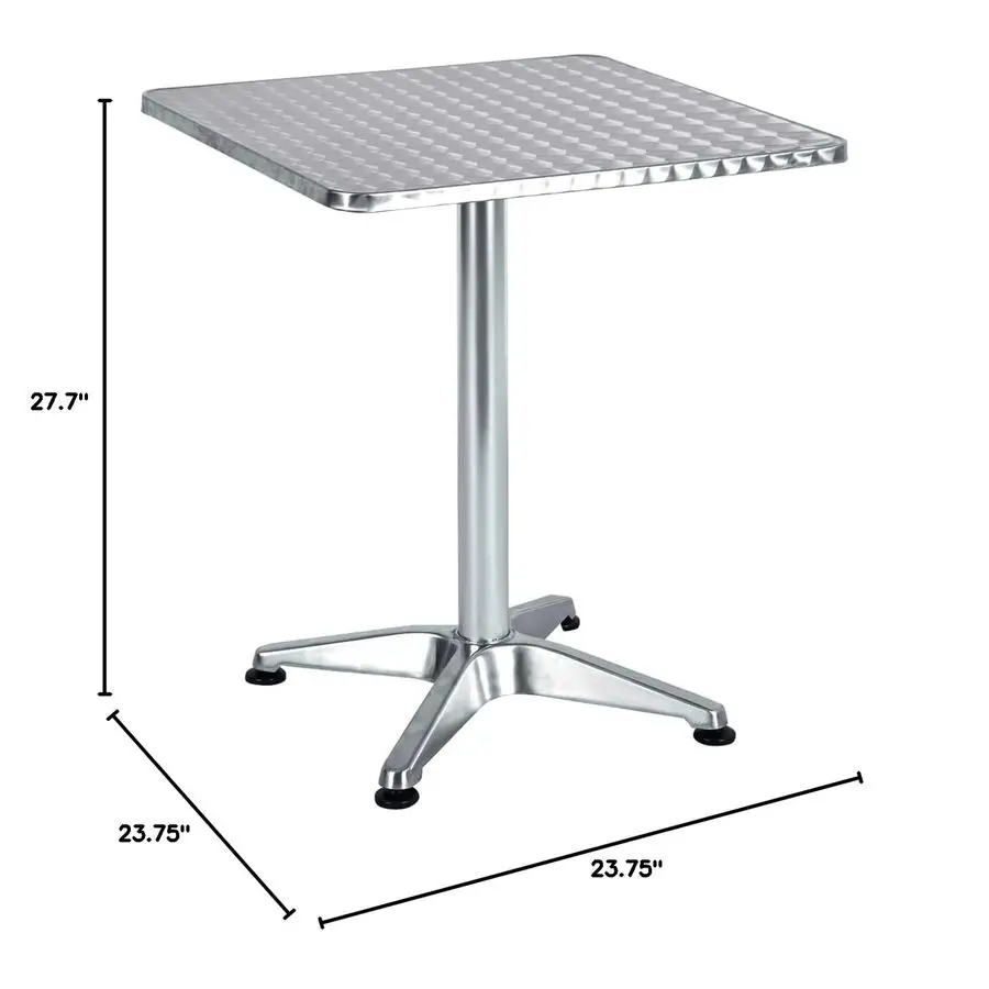 Ideal for Commercial Restaurant or Patio Usage. Create a delightful stylish dining lounge or bistro setup for your Cafe Shop Restaurant Courtyard Home Porch Poolside or Balcony with this Aluminum Table. Made of Stainless Steel top and MDF board for an astonished surface which keeps everything level amp comes with the same height as a card table. ALL WEATHER outdoor design. In order for it to be as long lasting as possible, it is recommended to protect from long periods of moisture and wet weather