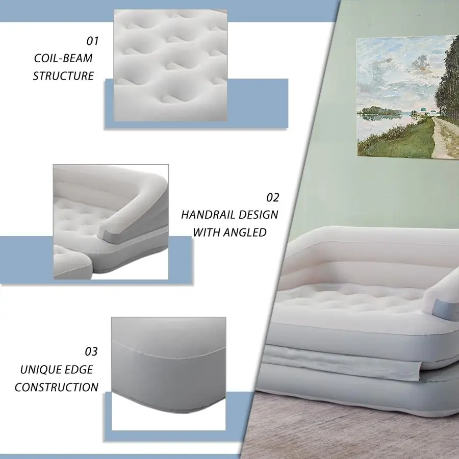 Multi function You can easily adjust the different form, switch between the inflatable bed and the air sofa. Great for watching movies, reading, guest rooms, and overnight stays.