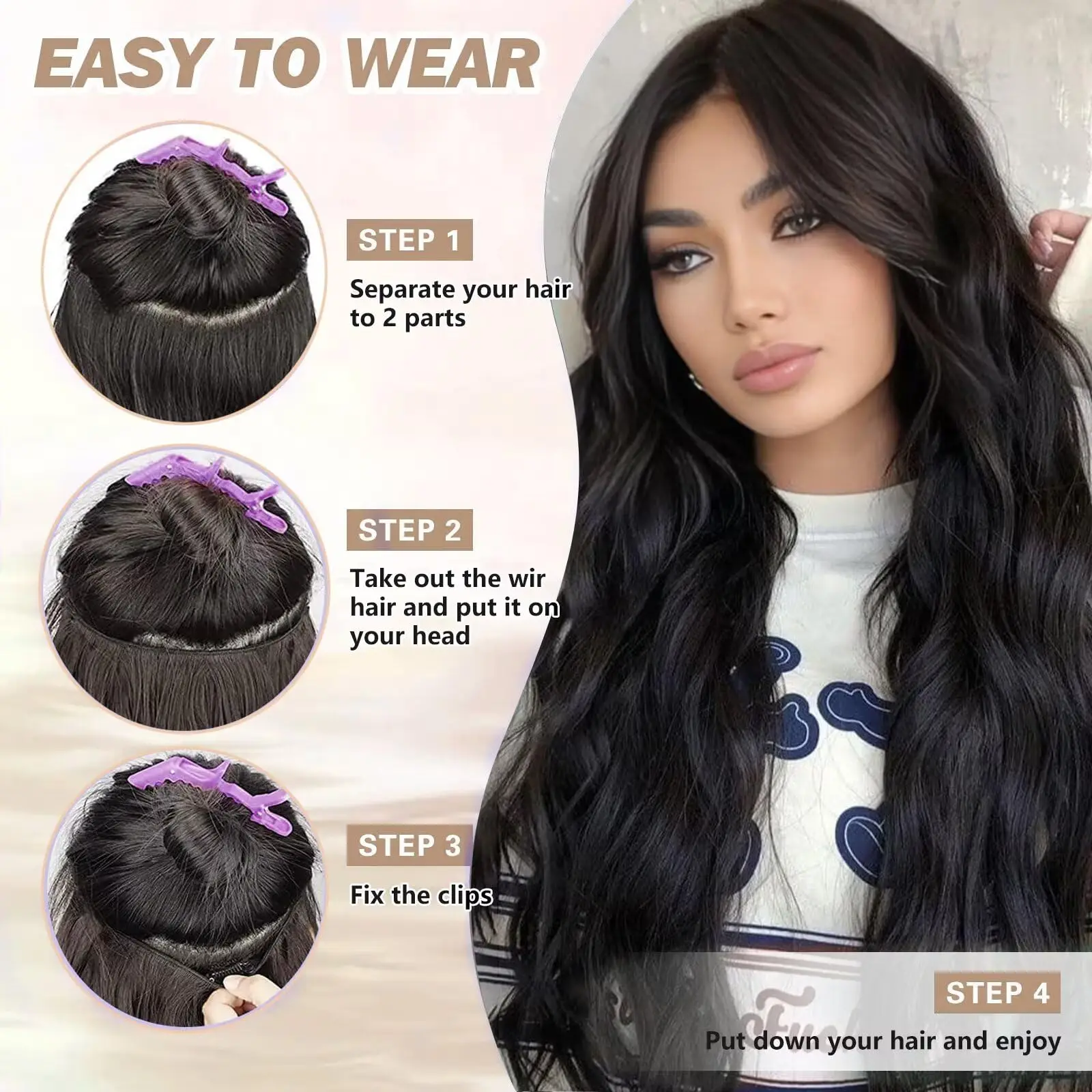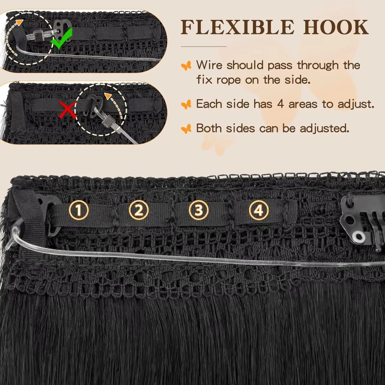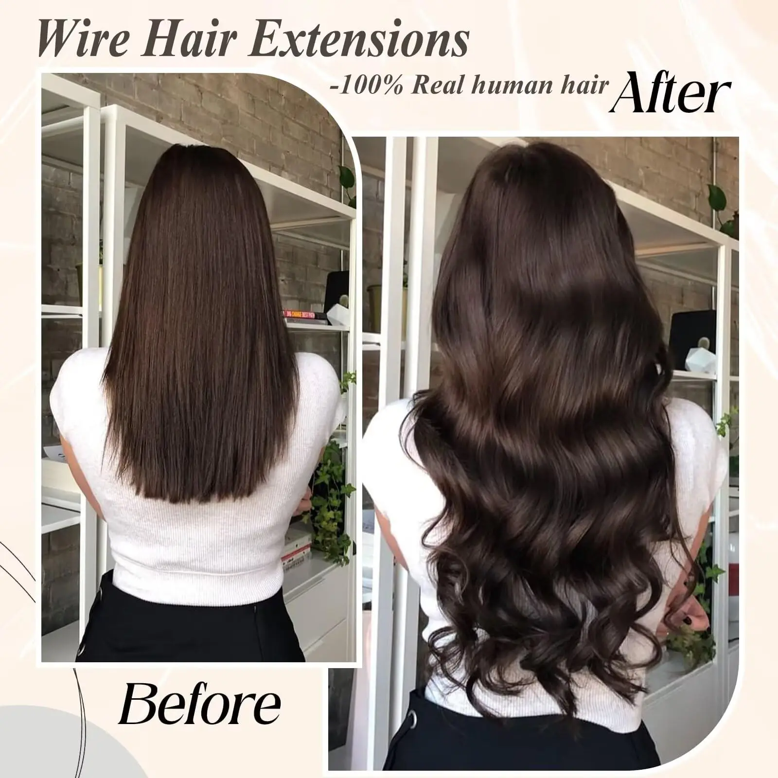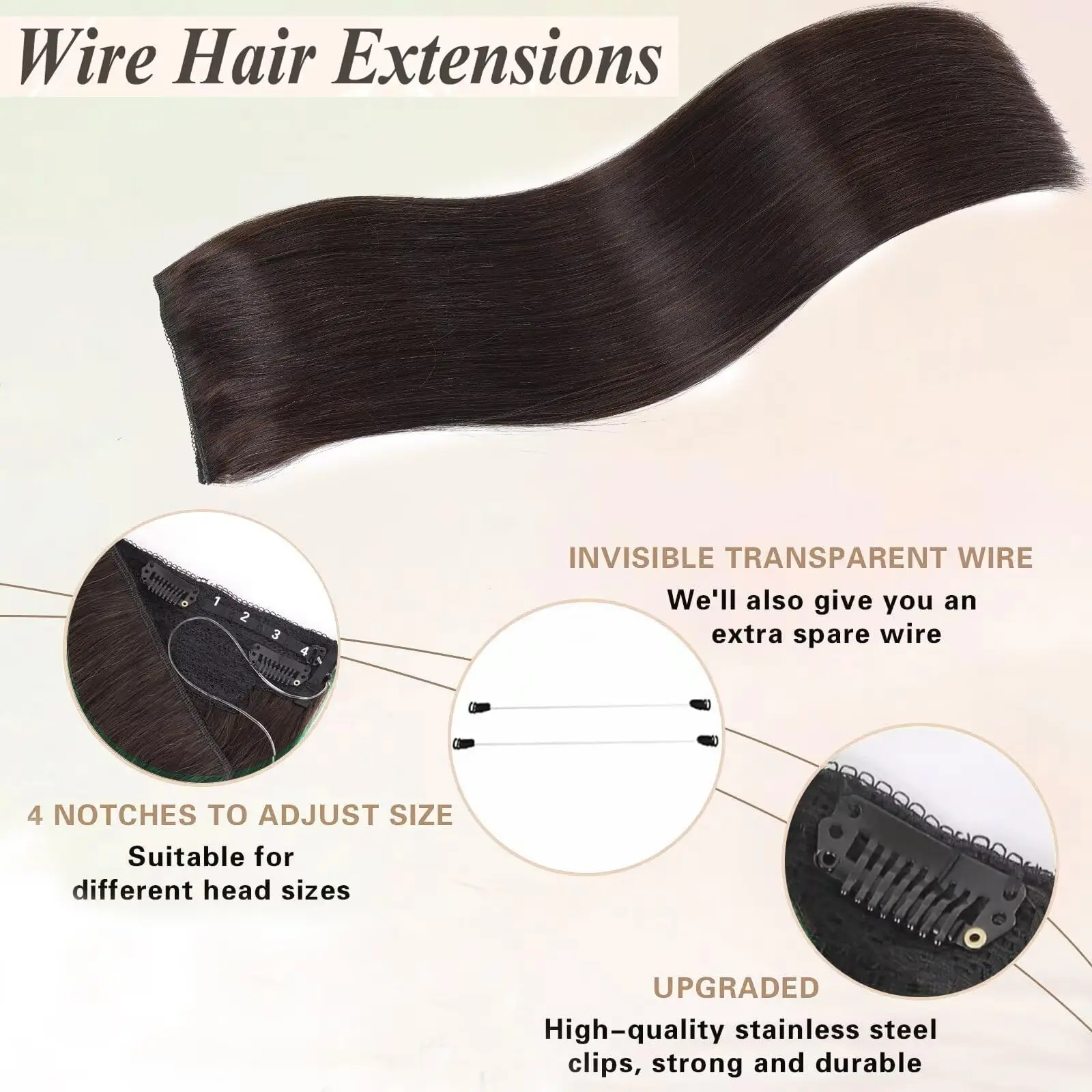 Invisible Wire Hair Extensions Real Human Hair Dark Brown Invisible Hair Halo Extensions for Women Adjustable Wire with Clips in Human Hair Extensions
