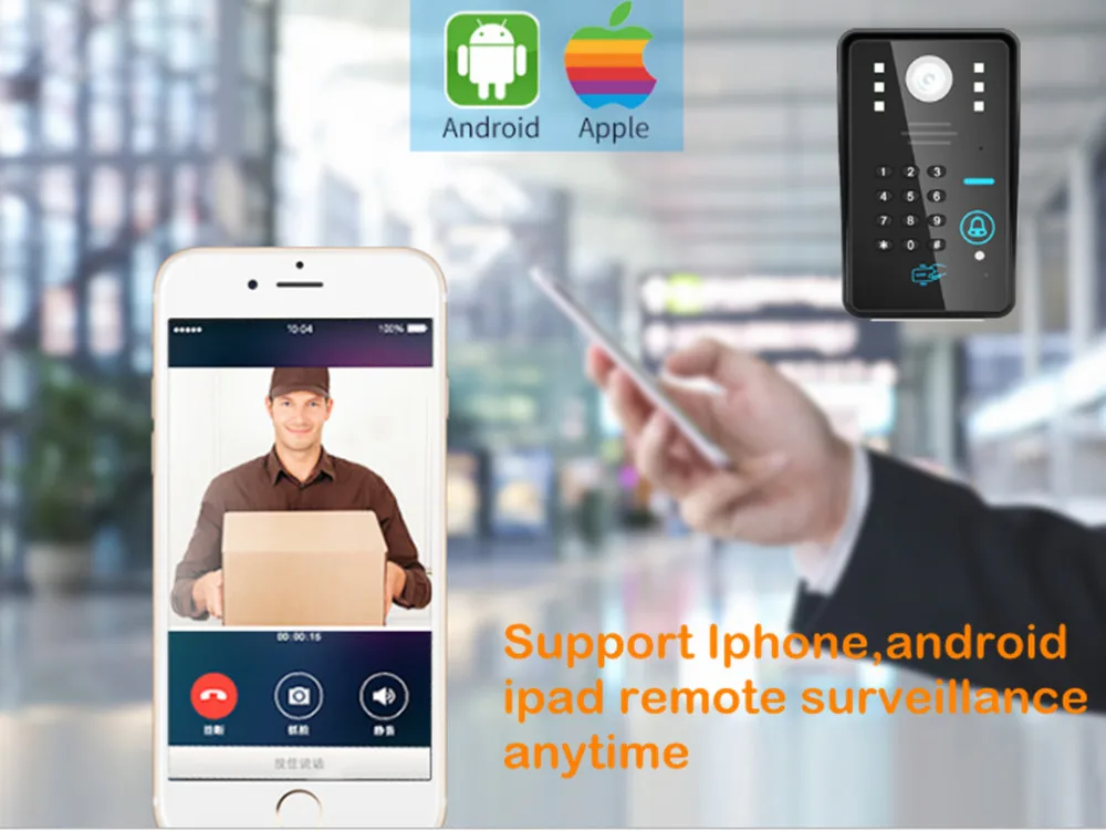 “wireless smart video doorbell intercom camera:This WiFi video door bell camera is also one wifi 1080P HD IP Camera,you could remote check the door camera by iphone ipad android phone video surveillance anytime anywhere,the installation and the connection of wifi ip door security camera is easy and the ip wifi video intercom camera also support RFID electric lock and exit button ,you could open the door by mobile phone and check the visitor by motion detection alarm function.wifi ip video door viewer is nice choice for home apartment
