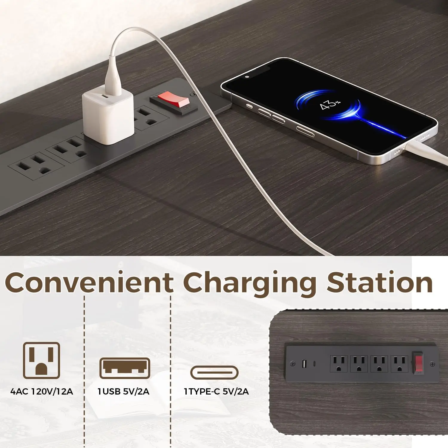 Built-in Charging Station: Stay powered with a convenient tv cabinet charging station: 4 AC outlets, 1 USB port, and 1 Type-C port. The built-in cable management holes keep wires organized and your tv console for living room neat and clutter-free.