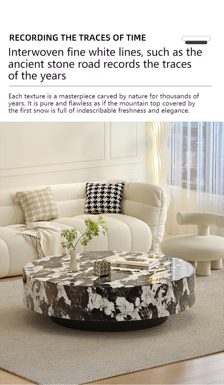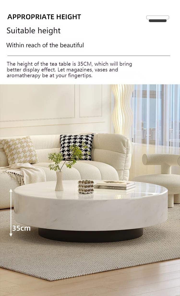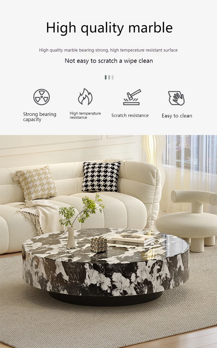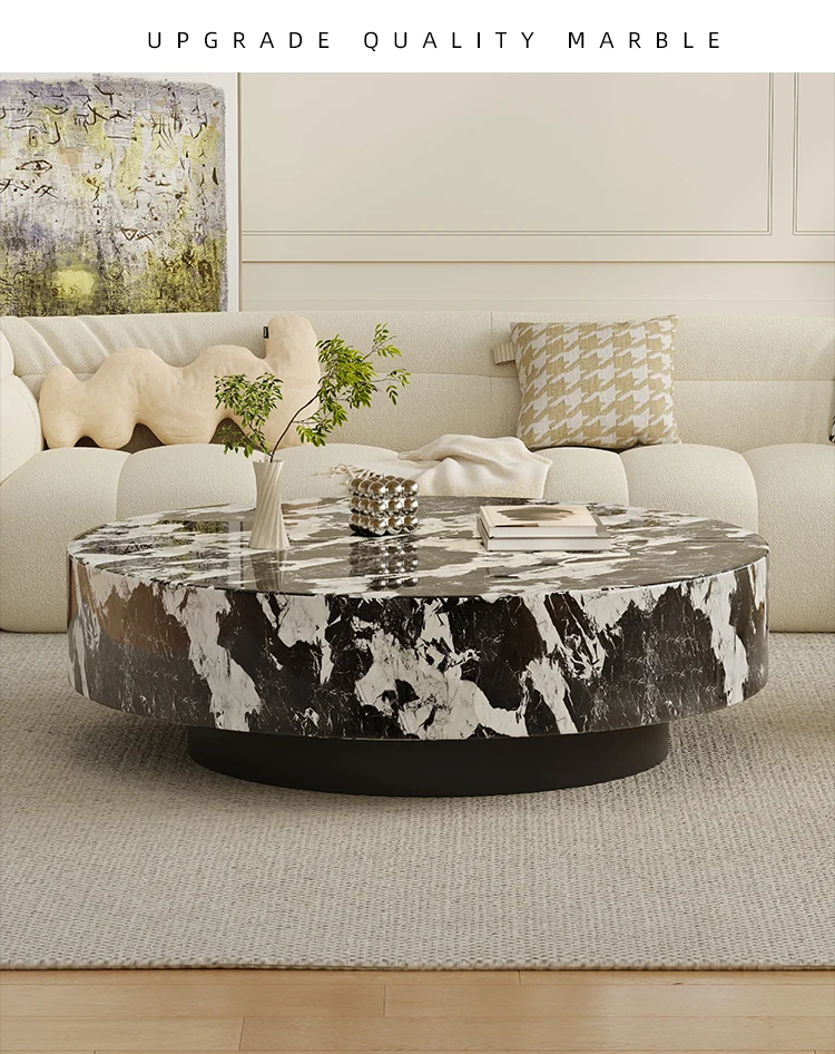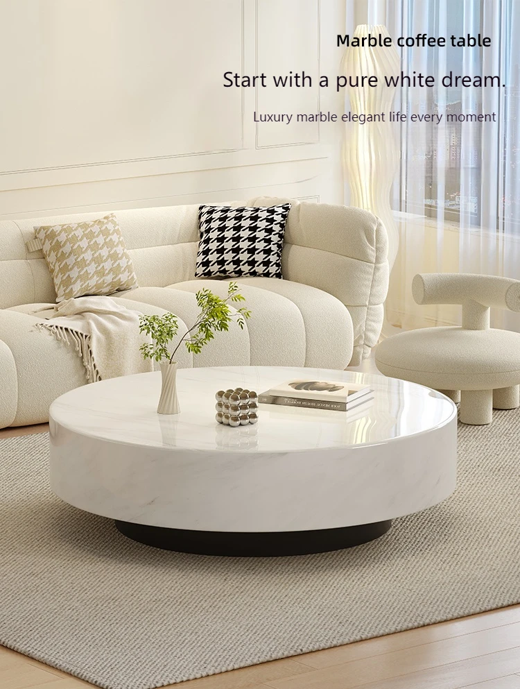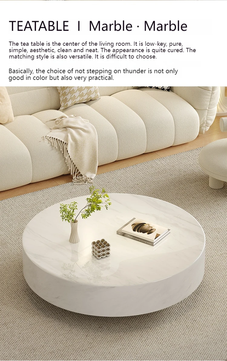 This set of round tables is perfect for a small living room. One large and one small are placed in a staggered manner, which avoids crowding the aisle and allows for easy placement of things – the large table can be used for tea sets, and the small table can be used as a side table/stool. The texture of the white marble is like newly excavated white jade, especially after being dusted, it reveals fine golden dots in the sun. Friends always ask if it is a designer style. A hot cup can be placed directly on the table without leaving any mark (but it is recommended to use a coaster for more peace of mind). The only problem is that you have to lift it up to move it, and you are afraid of scratching the floor when dragging it – but the weight makes it look solid, and the money is well spent.
