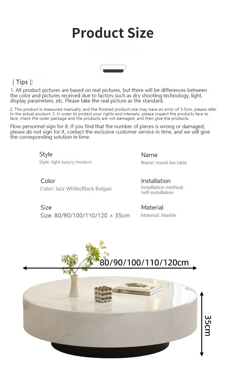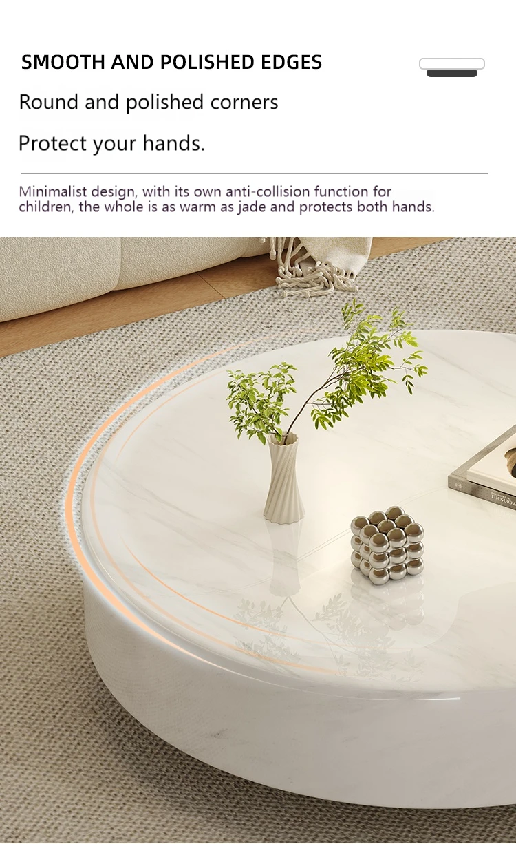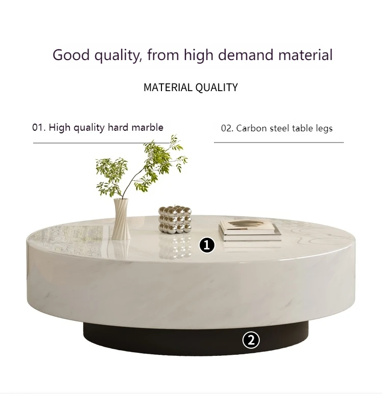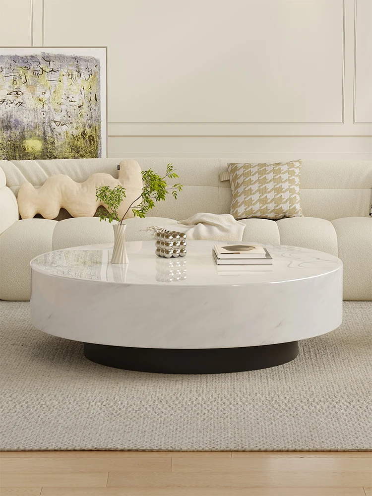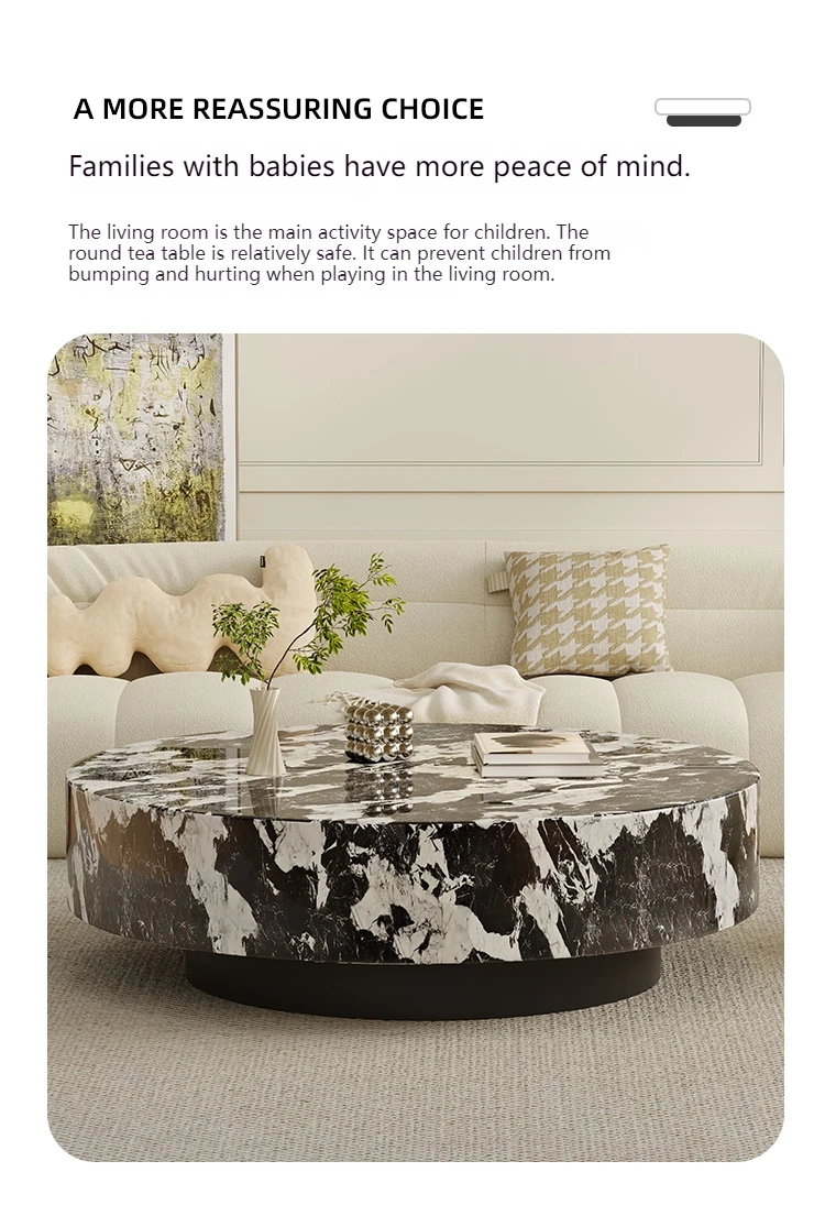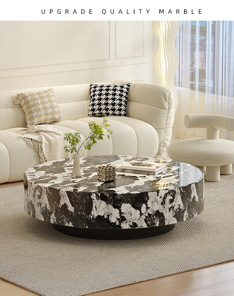 This set of round tables is perfect for a small living room. One large and one small are placed in a staggered manner, which avoids crowding the aisle and allows for easy placement of things – the large table can be used for tea sets, and the small table can be used as a side table/stool. The texture of the white marble is like newly excavated white jade, especially after being dusted, it reveals fine golden dots in the sun. Friends always ask if it is a designer style. A hot cup can be placed directly on the table without leaving any mark (but it is recommended to use a coaster for more peace of mind). The only problem is that you have to lift it up to move it, and you are afraid of scratching the floor when dragging it – but the weight makes it look solid, and the money is well spent.