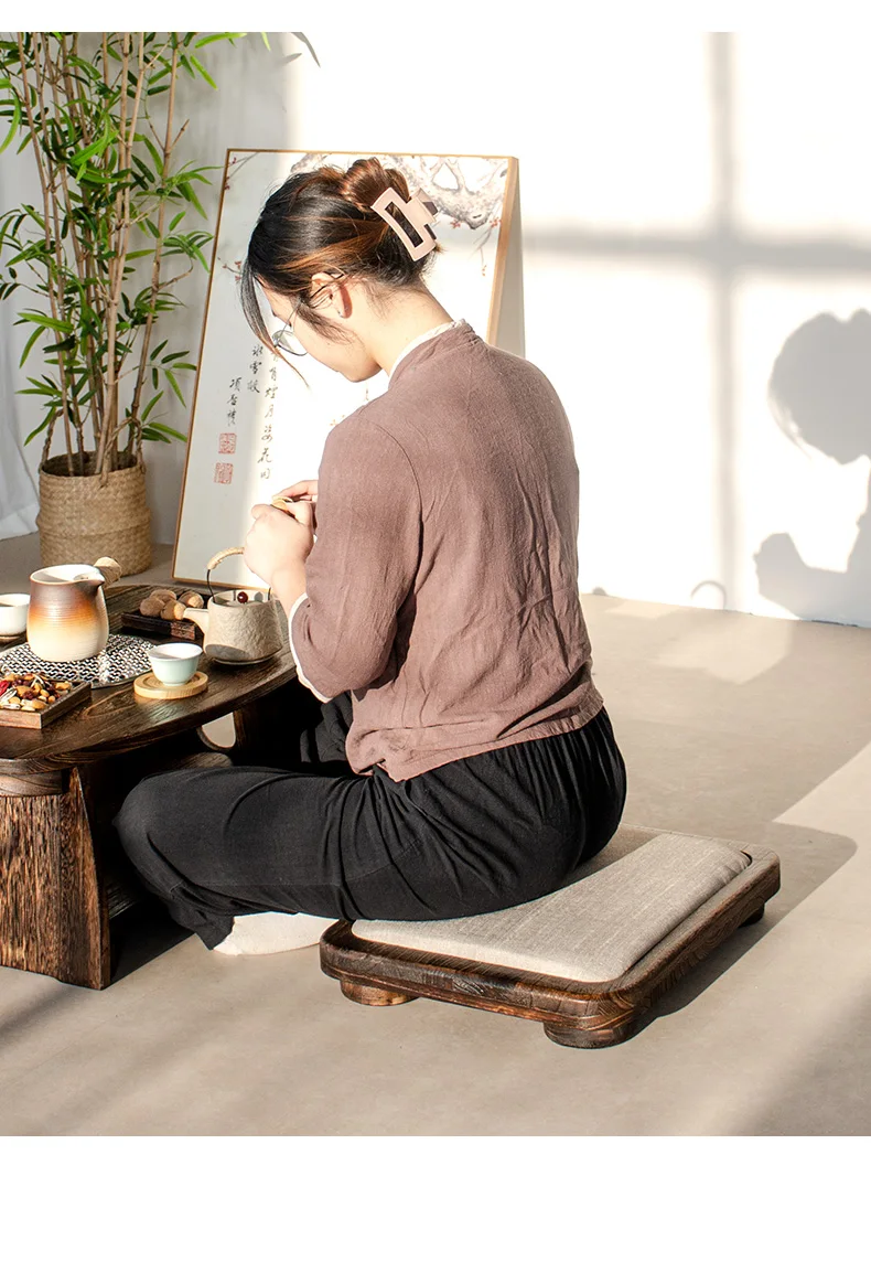 English Title: Solid Wood Tatami Floor Chair, Comfortable Meditation Seat for Office and Bedroom