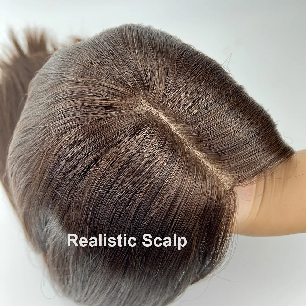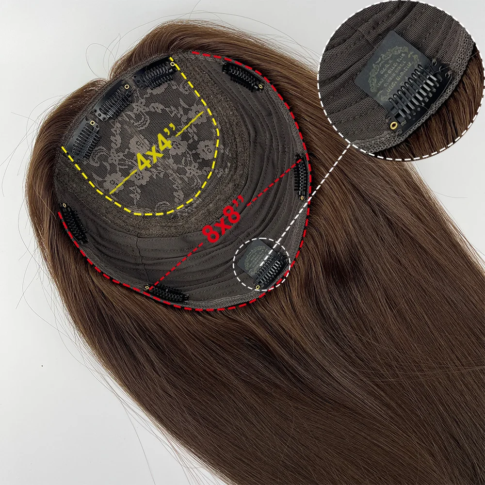 Jewish Topper Full Virgin European Hair 8×8'' Silk Base Natural Scalp Medium Brown Same Length Sheitels Silk Top Kosher Wig