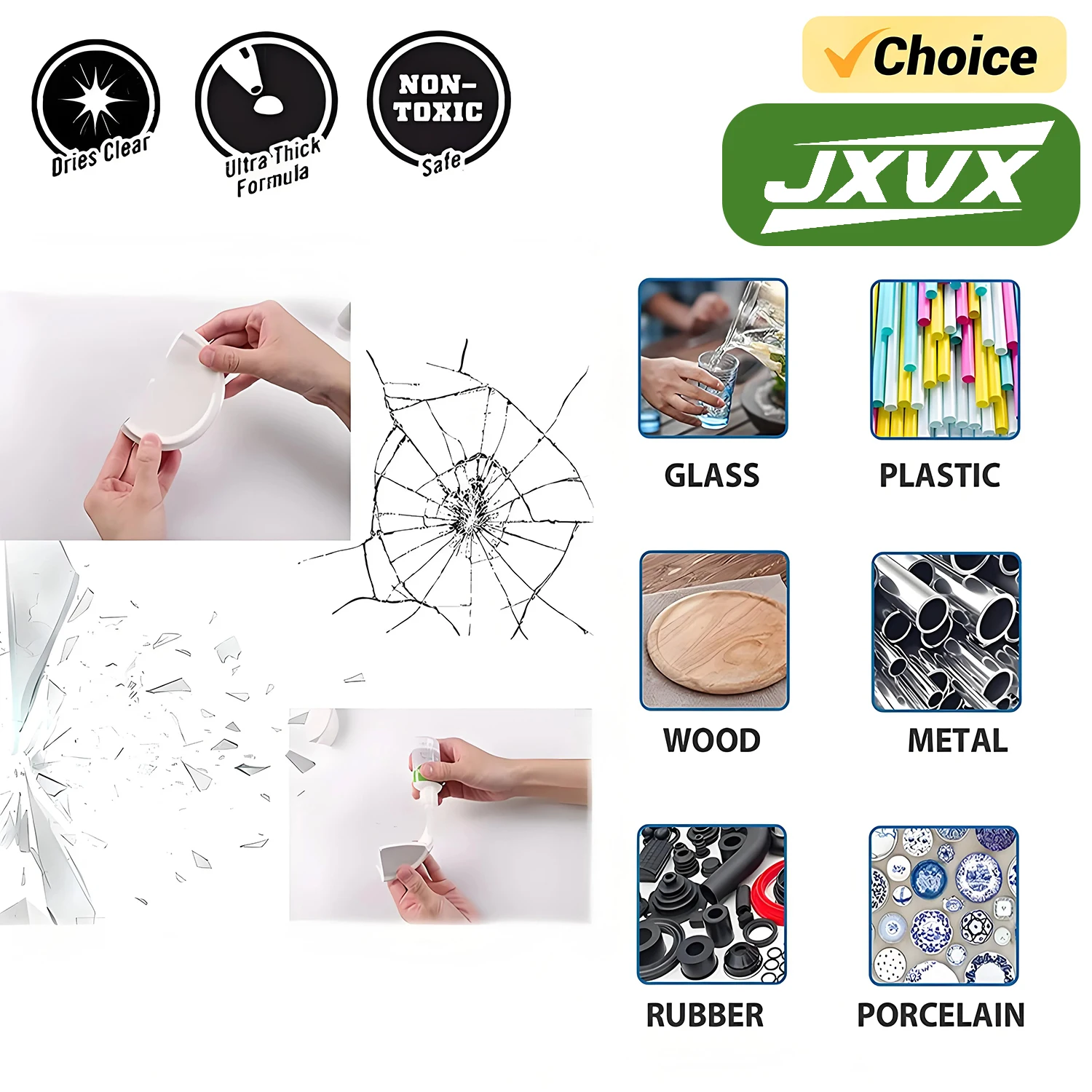 JXVX Versatile Adhesive:For surfaces including metal, wood, rubber and most plastics. Can be applied to flat, vertical, uneven and overhead surfaces.
