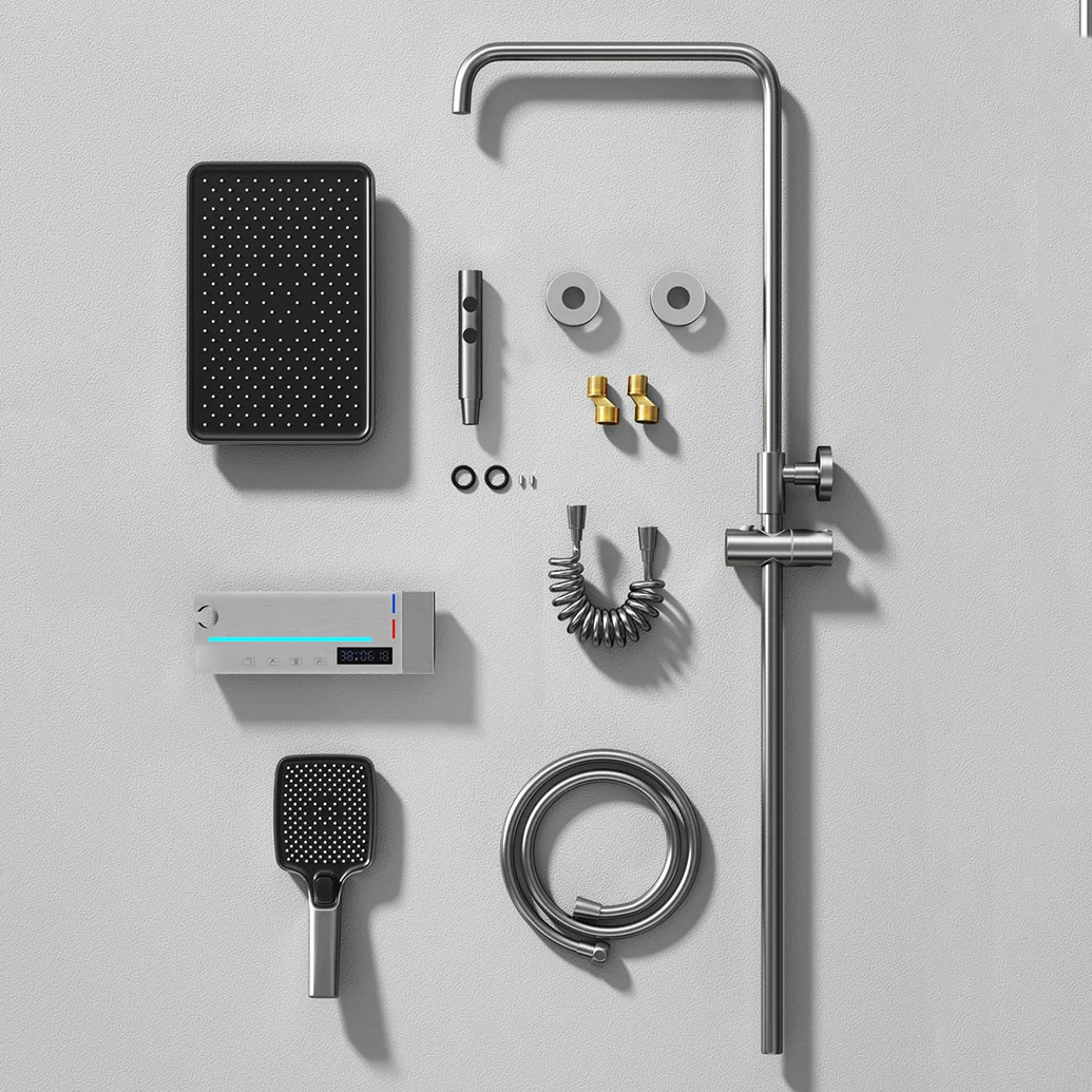 ❤ Shower Materials:Shower head ,handheld shower head and bidet is high quality abs plastic,the rest all is solid brass,digital display for we enjoy take shower time.