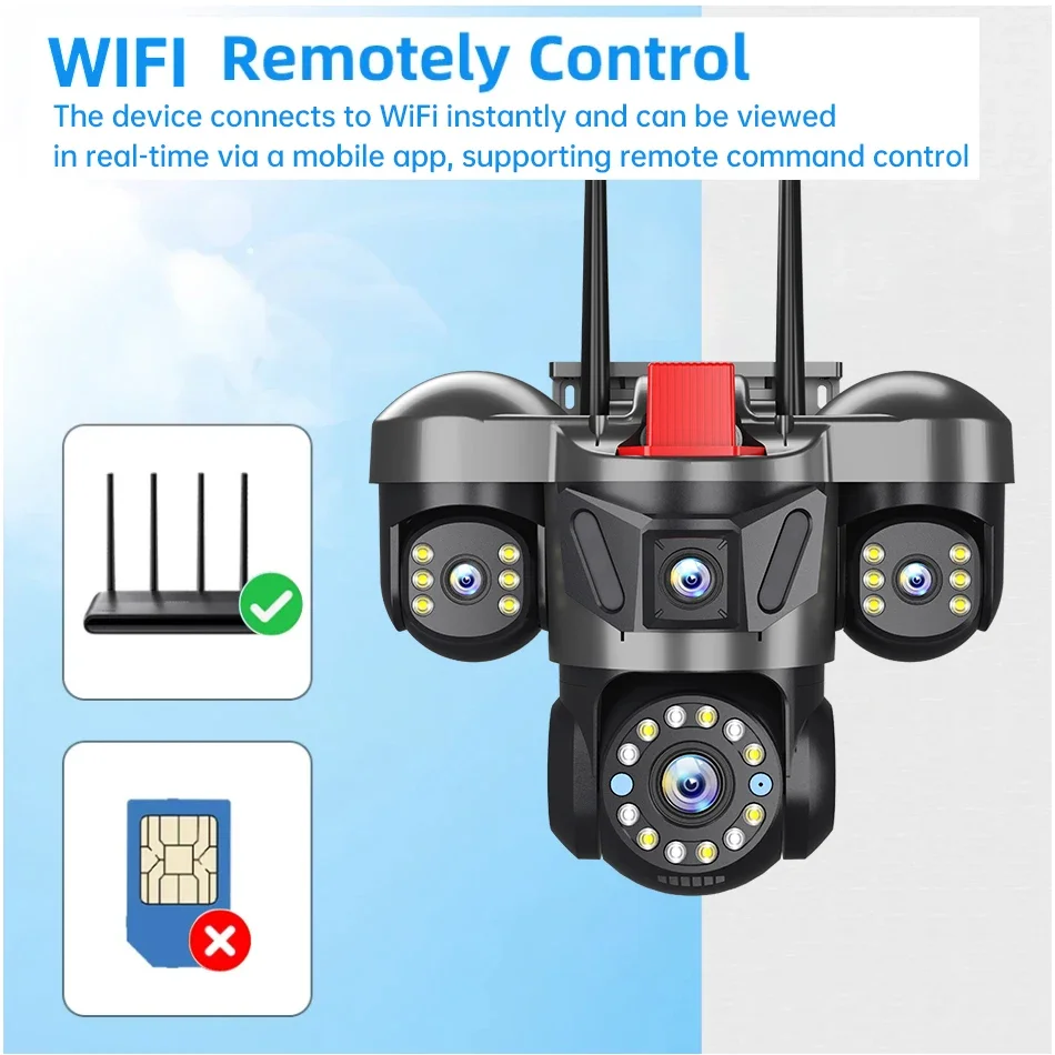 KERUI 12K 24MP Outdoor WiFi Camera Triple Lens Home Security CCTV Video Surveillance System With Night Vision Triple Screens