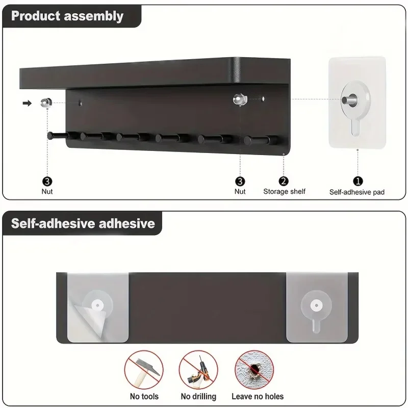 This key shelf is punch-free, it will provides sticker and screws to install, no complex installation, easy to install.