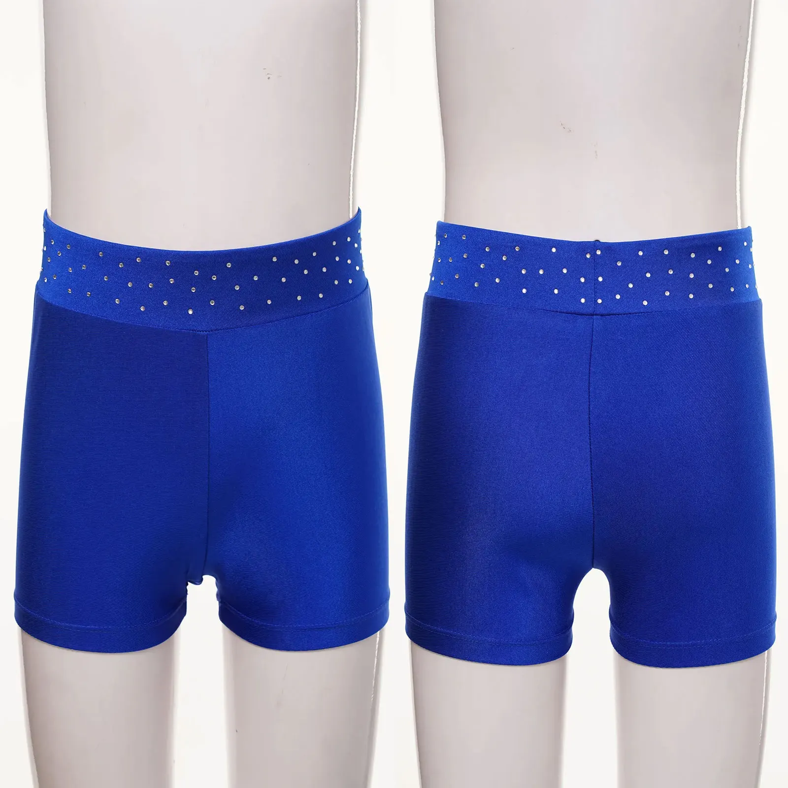 #6-16 Kids Girls Shiny Rhinestones Waistband Shorts for Figure Skating Dance Gymnastics Acrobatics Performance