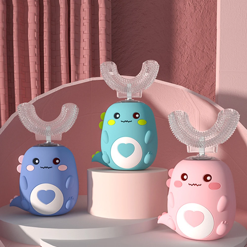 Kids Electric Toothbrush IPX7 Waterproof U-Shaped Sonic Toothbrush 3 Cleaning Modes Whole Mouth 360 Degree Cleaning Rechargeable