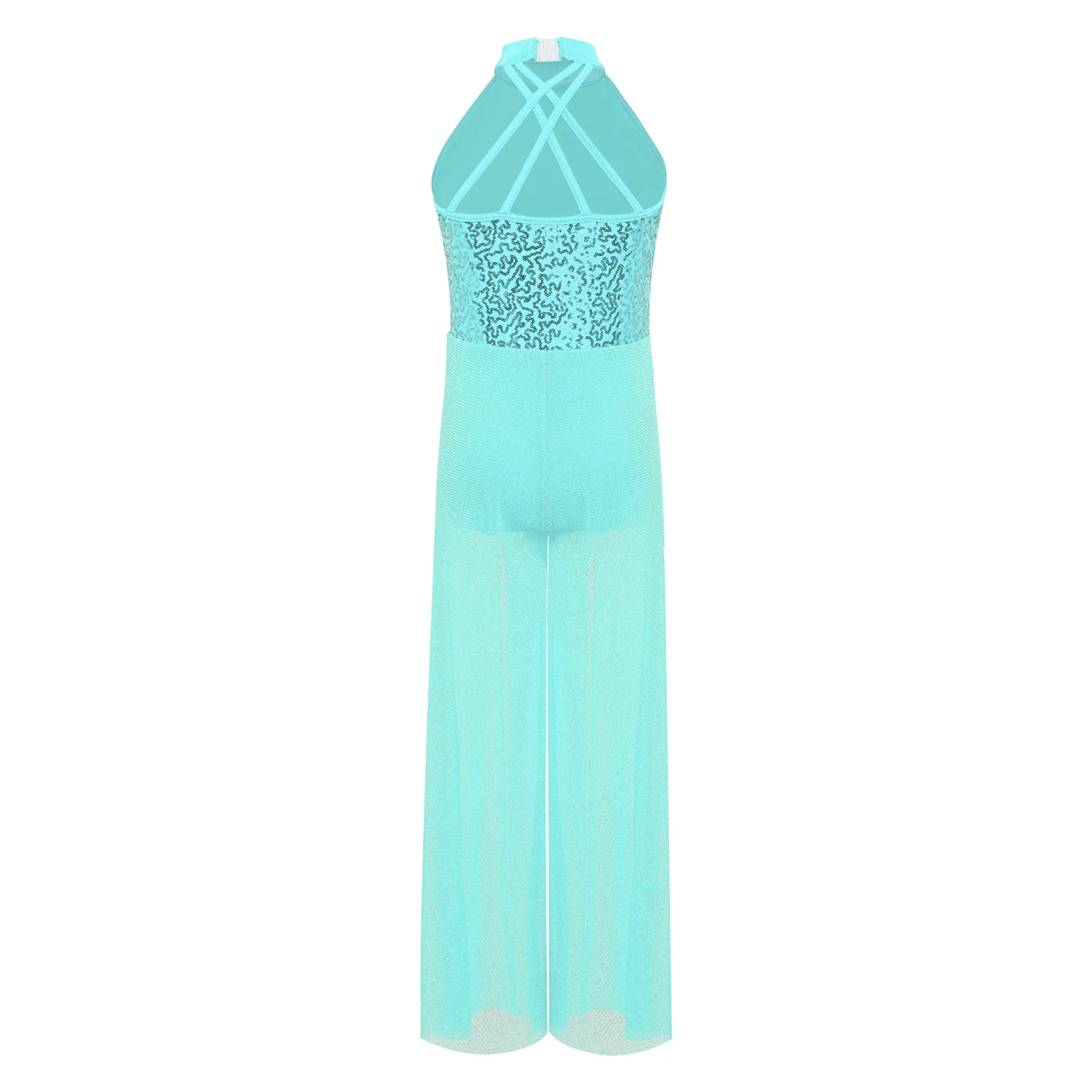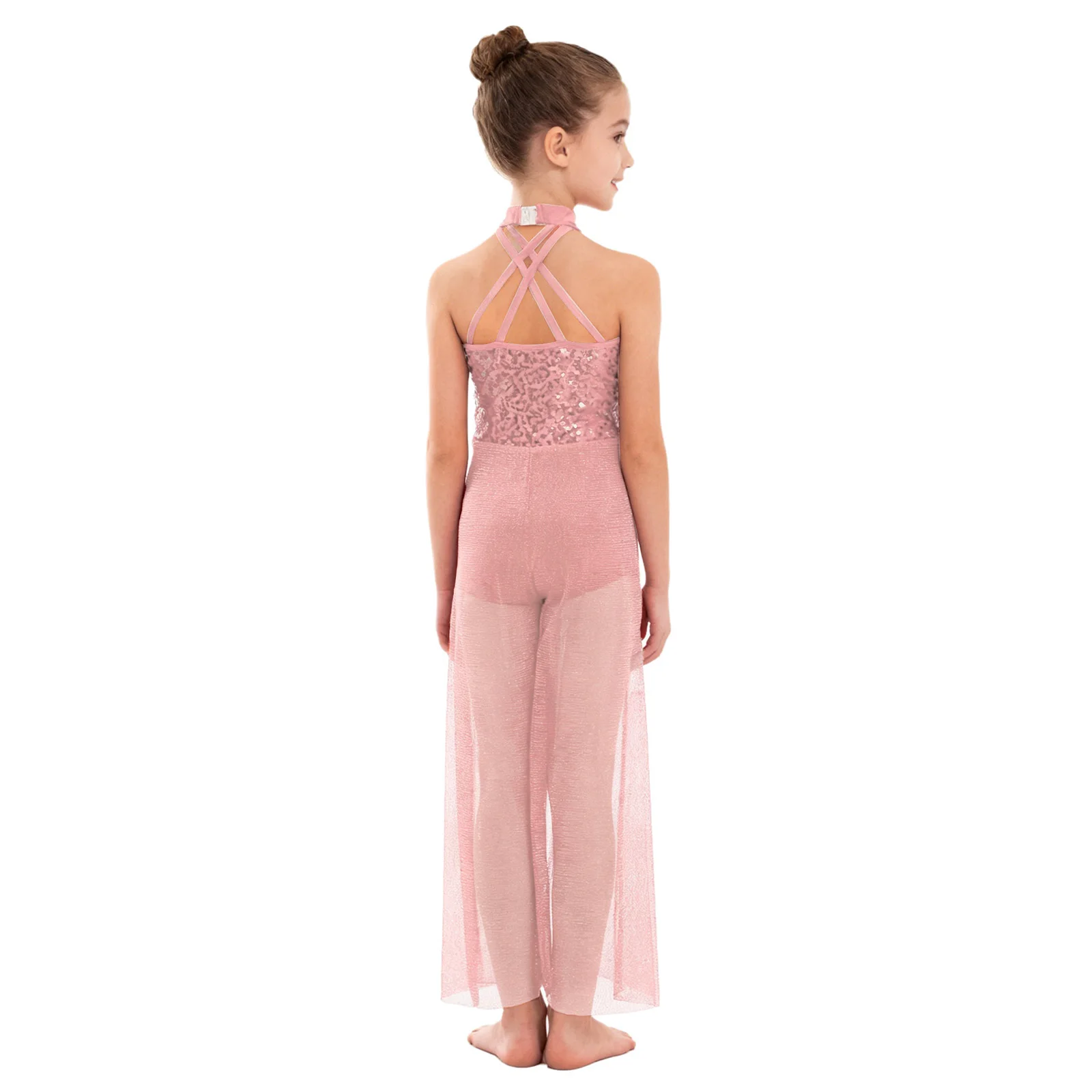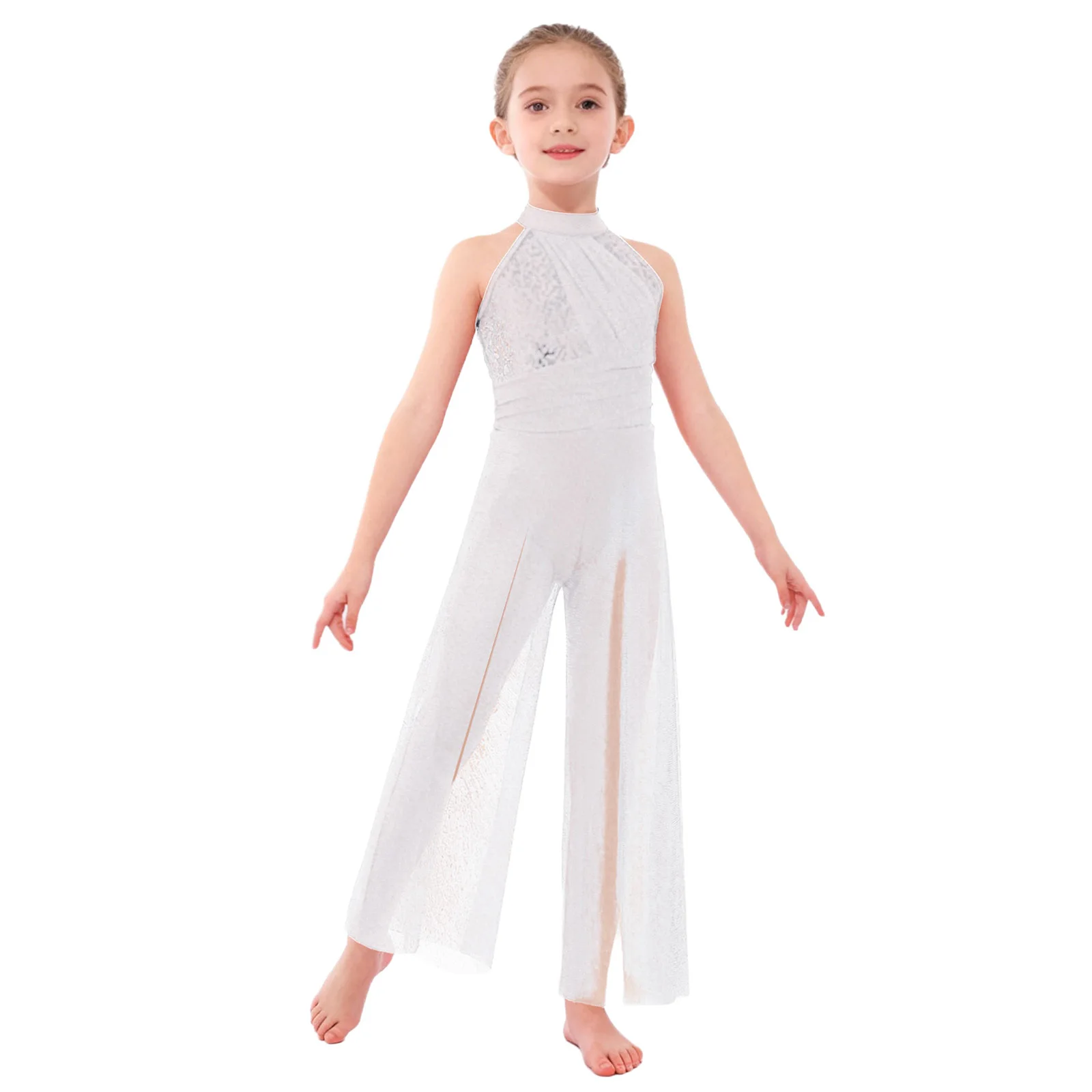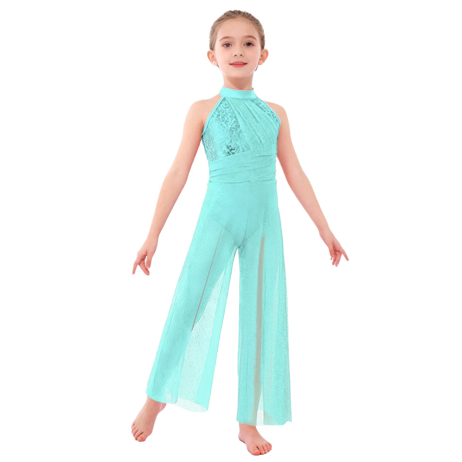 - Kids Girls Sequin Shimmery Gymnastic Ballet Jumpsuit: Wide-Leg One-piece Dance Modern Contemporary Costume,Kids Girls Sleeveless Contemporary Dance Costume